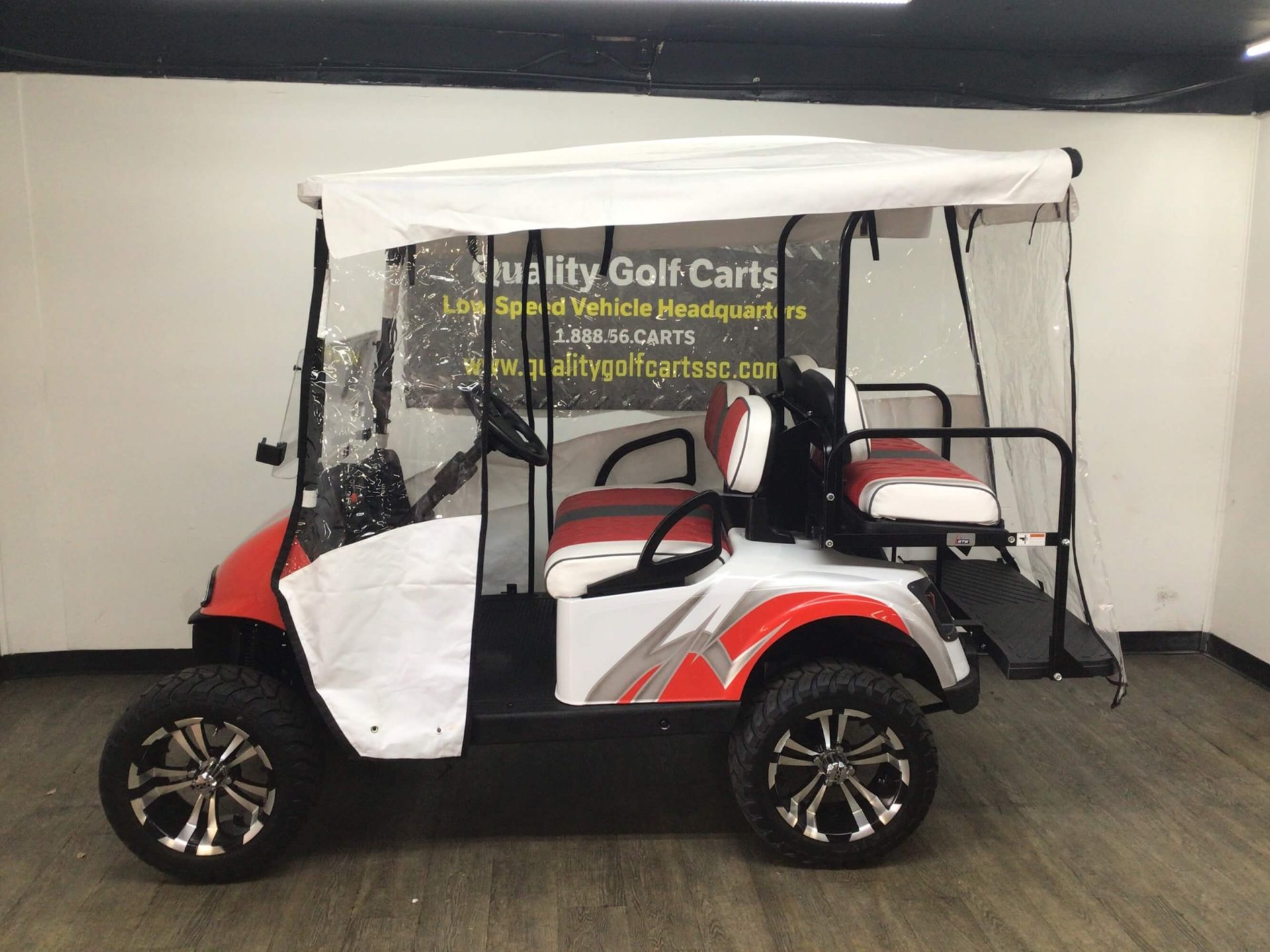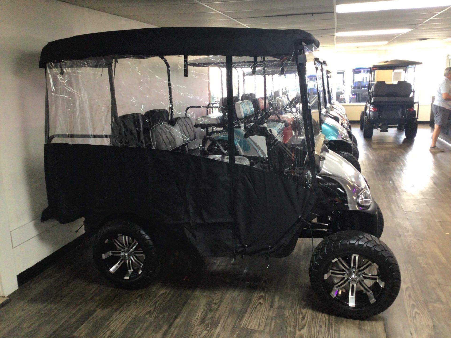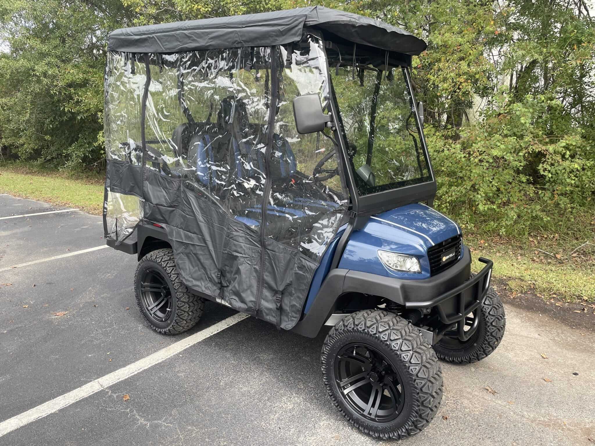 We offer a wide variety of Enclosures for your golf cart. A Golf Cart Enclosure is a weatherproof cover with vinyl windows that allows you to drive your golf cart in the rain or winter weather without the interior getting wet. Stop by today to pick one up for your golf cart, you won’t regret it! To ensure you get the correct enclosure for your cart please bring in measurements and a photo of your top. Some enclosures are cart specific and are made for certain tops.