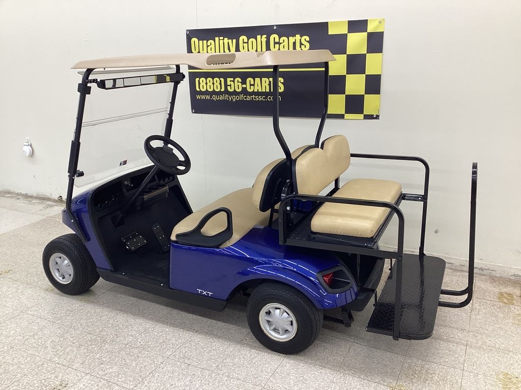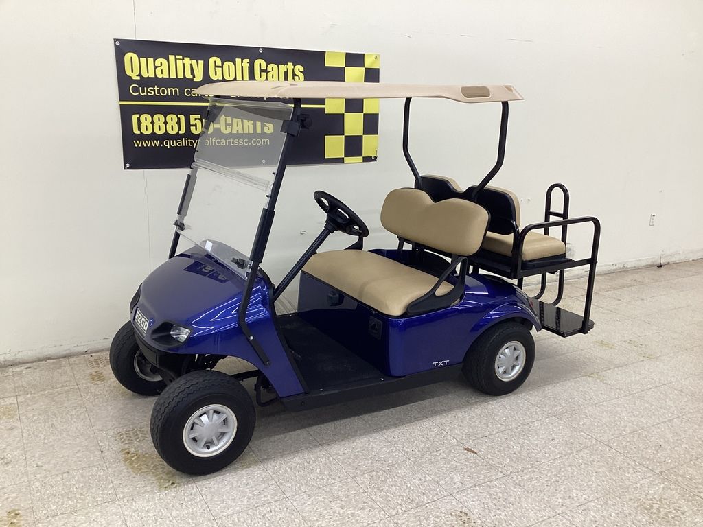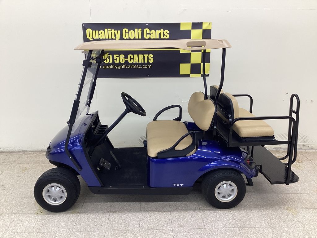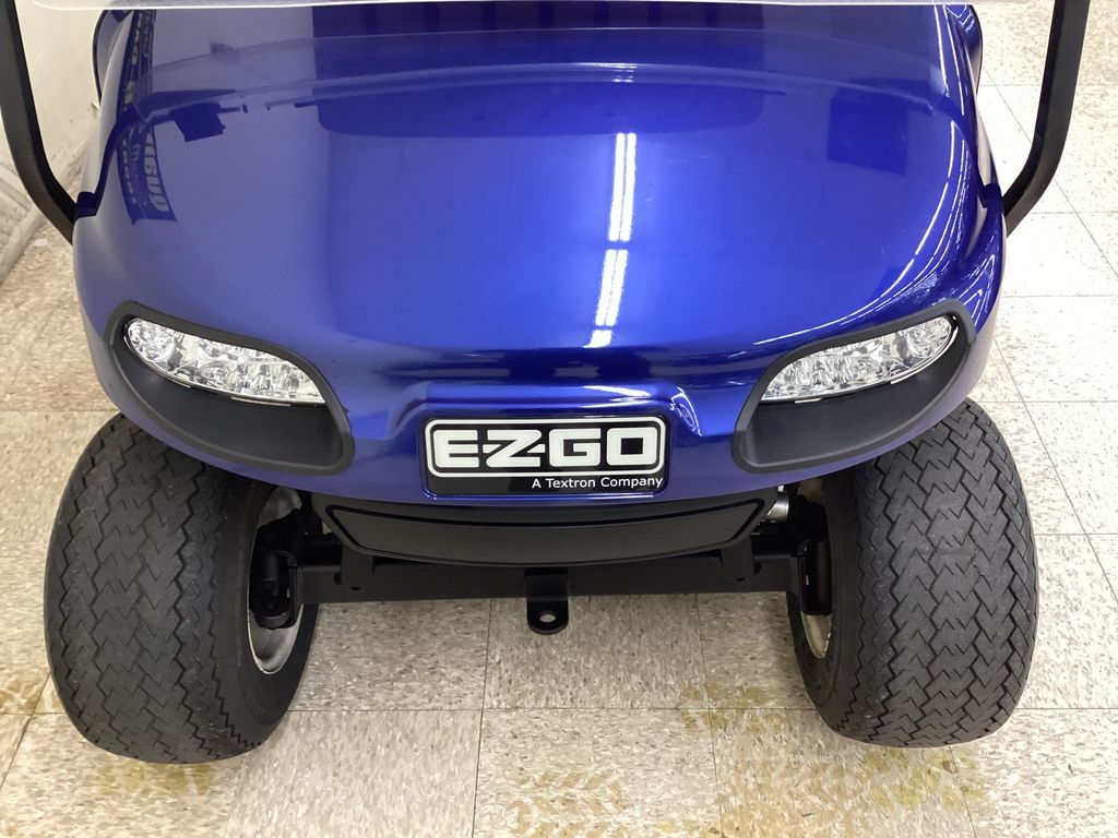18 Months Warranty on Batteries – 6 Months Warranty on Cart – Electric Blue Body w/Short Stone Top – Stone Seats w/Fold Down Rear Seat Kit – Fold Down Windshield – LED Headlights / Tail Lights – 5 Panel Mirror – Safety Bar – Stock EZ GO Wheels & Tires