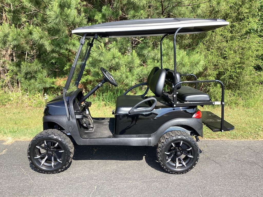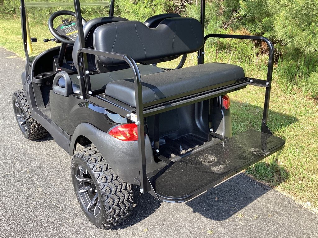 6 Months Warranty on Cart – Black Body w/Long Black Top – Black Seats w/Fold Down Rear Seat Kit – NEW LED Deluxe Light Package w/Turn Signals – NEW Lift Kit w/ 14″ Sport Wheels & Tires – NEW Fold down windshield – NEW Rear View Mirror – Dual USB Port – Fuel Injection – Serviced – Ready To Go!