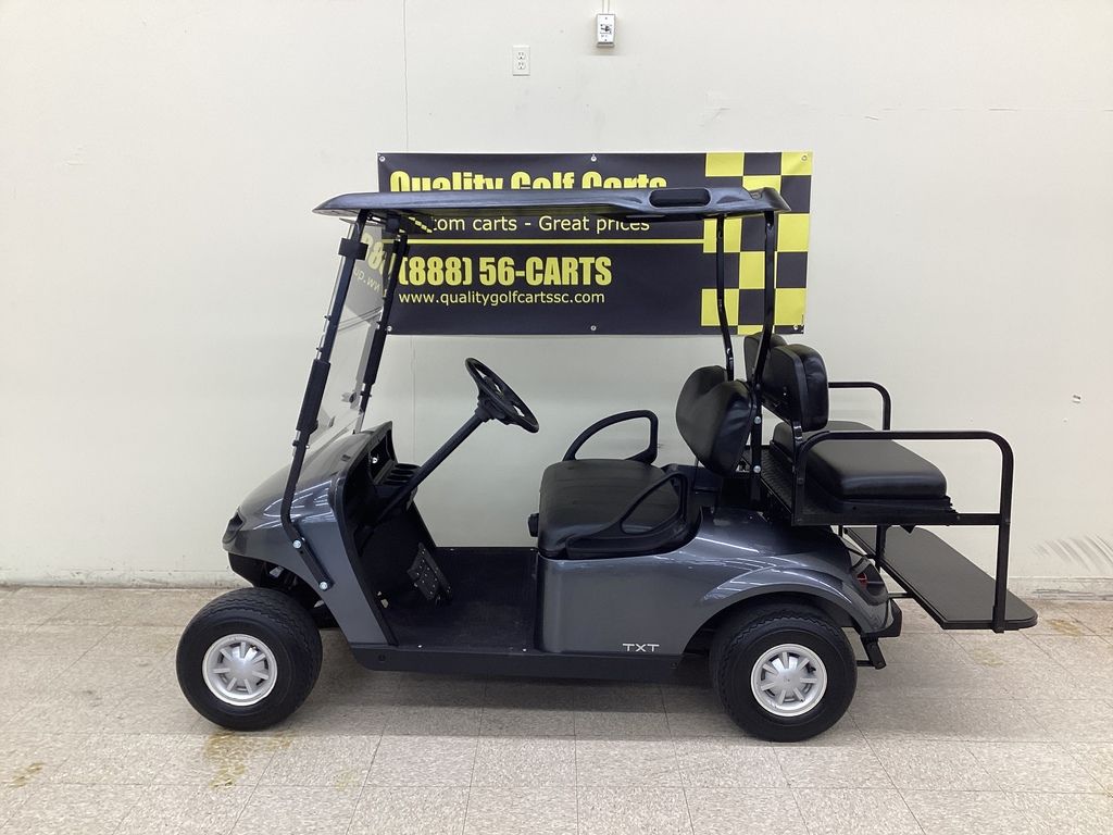 18 Months Warranty on Batteries – 6 Months Warranty on Cart – Charcoal Gray Body w/Short Black Top – Black Seats – Fold Down Rear Seat Kit – Fold Down Windshield – LED Headlights & Tail Lights – Rear View Mirror – Stock EZ GO Wheels & Tires