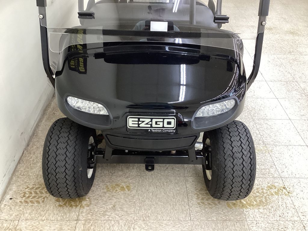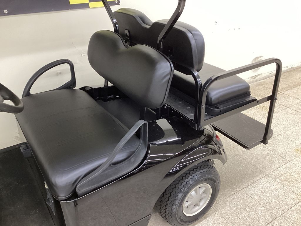 18 Months Warranty on Batteries – 6 Months Warranty on Cart – Black Body w/Short Black Top – Black Seats – Fold Down Rear Seat Kit – Fold Down Windshield – LED Headlights & Tail Lights – Rear View Mirror – Stock EZ GO Wheels & Tires