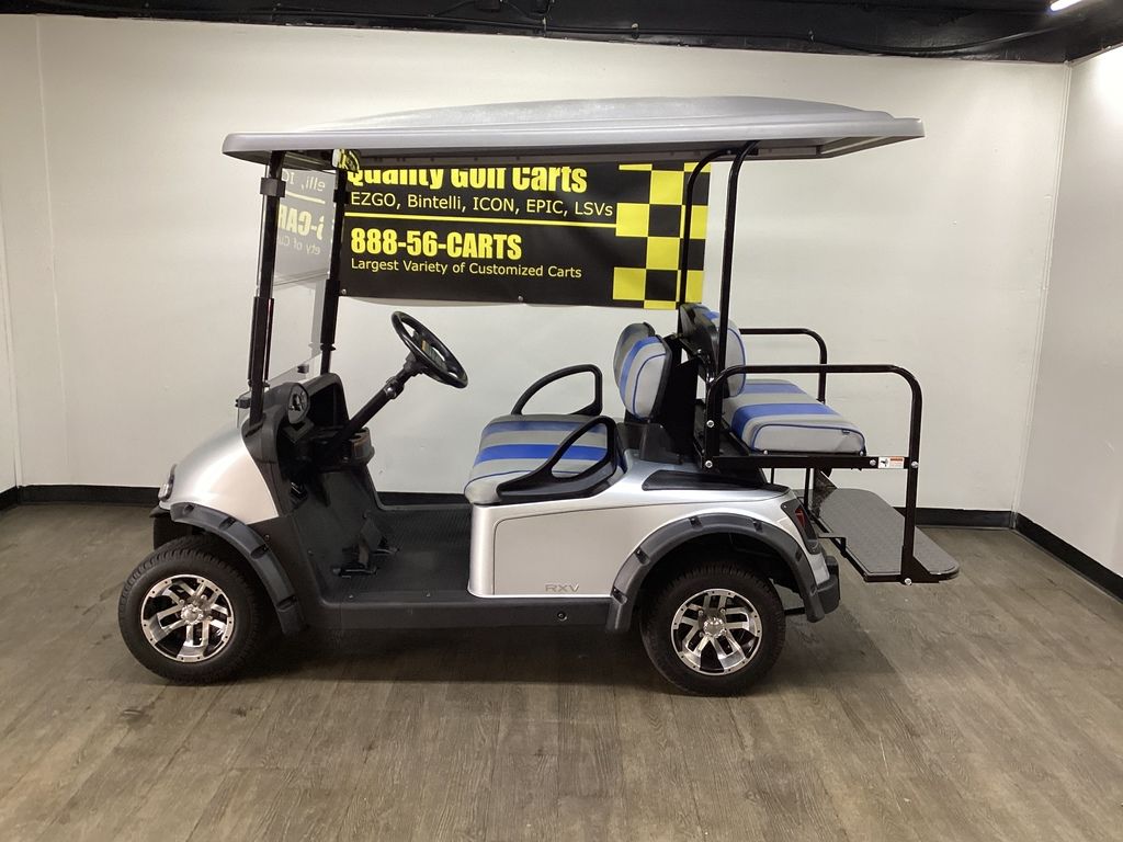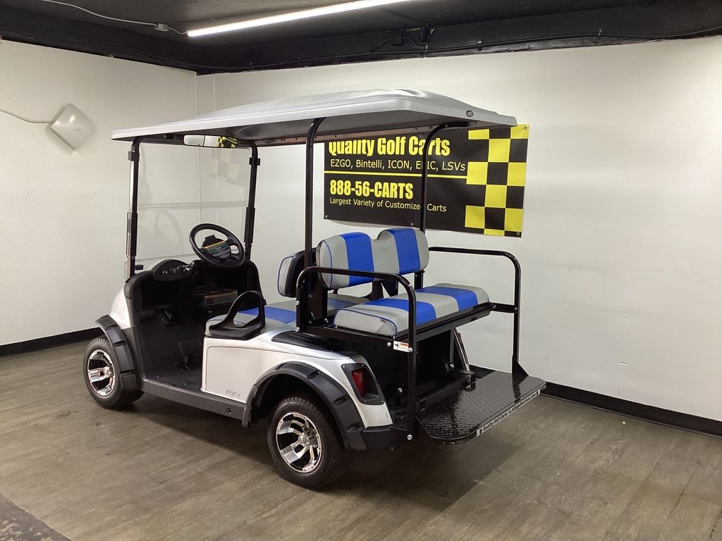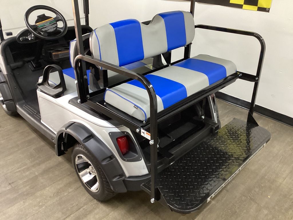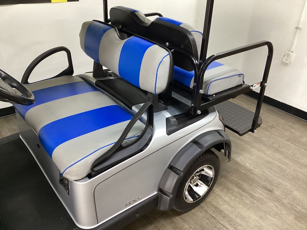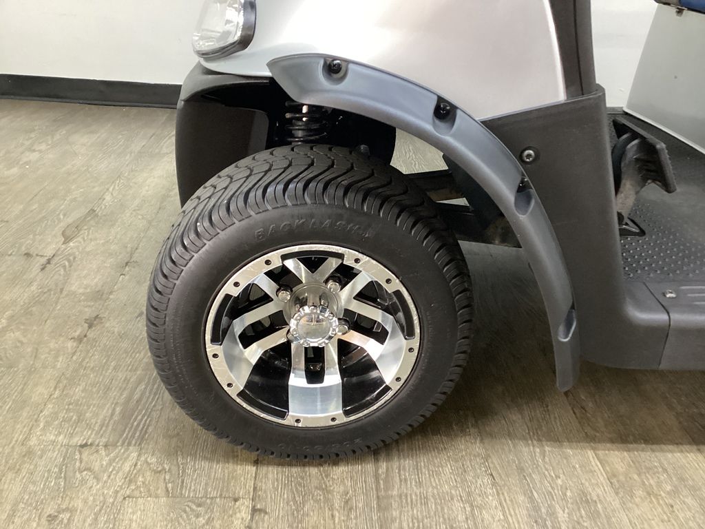 18 Months Warranty on Batteries – 6 Months Warranty on Cart – Silver Body – NEW Long Silver Top – Custom 2 Tone Seats – NEW Fold Down Backseat Kit – NEW LED Light Kit w/ Signals – Fold Down Windshield – 10″ Sport Wheels – NEW Black Fender Flares – NEW SOC Meter – NEW Convex Rear View Mirror