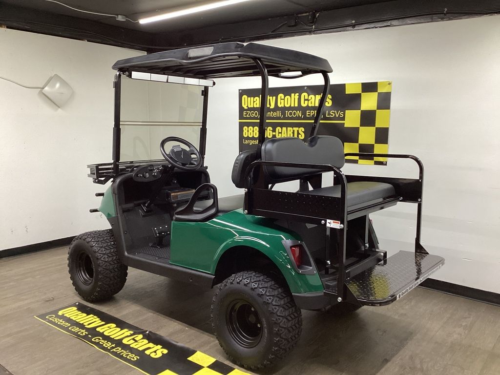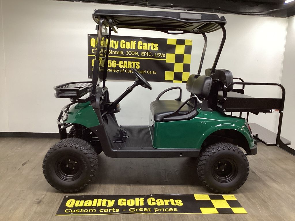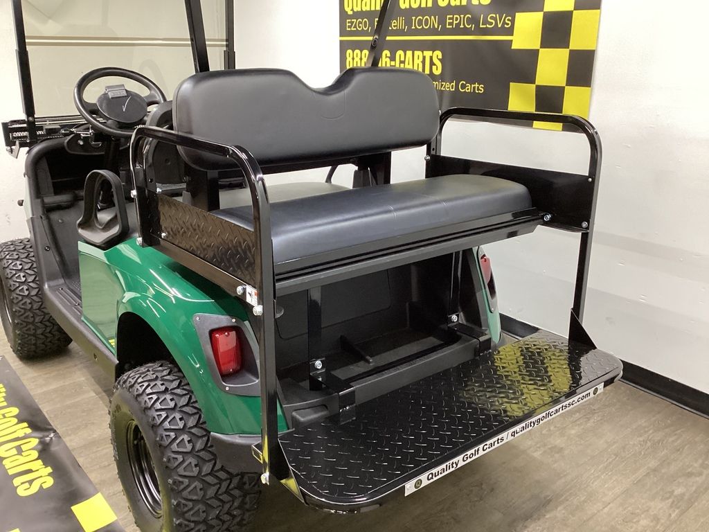 18 Months Warranty on Batteries – 12 Months Warranty on Cart – Green Body w/Short Black Top – Black Seats w/NEW Fold Down Rear Seat Kit – NEW LED Deluxe Light Package w/Signals – NEW Lift Kit w/10″ A/T Tires – NEW Black Brush Guard – NEW Front Clay Basket – NEW Fold Down Tinted WIndshield – NEW SOC Meter – USB Port