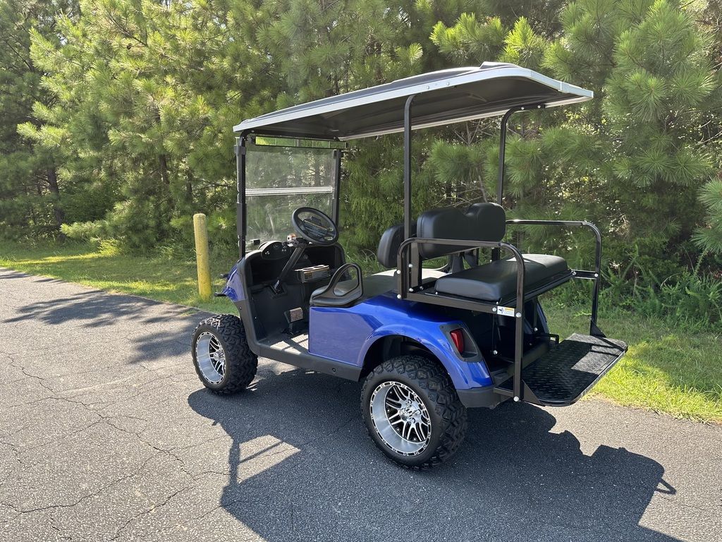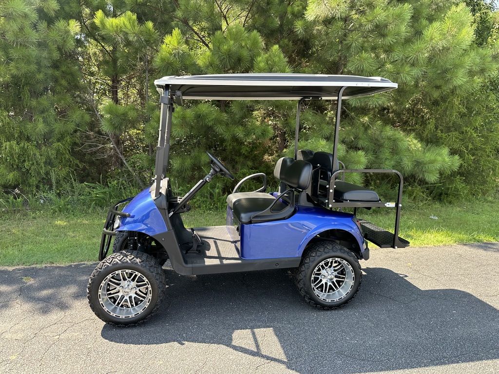 18 Months Warranty on Batteries – 12 Months Warranty on Cart – NEW Electric Blue Body w/ Long Top – Black Seats w/ Fold-down Rear Seat – NEW Lift Kit w/ NEW 14″ Sport Wheels & Tires – NEW LED Deluxe Light Package w/ Signals – NEW Rear-view Mirror – NEW Black Brush Guard – NEW Fold-down Windshield – NEW State of Charge Meter – NEW USB Port