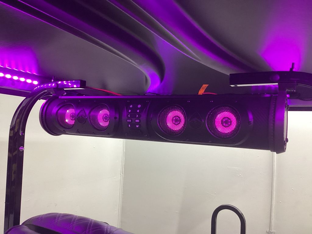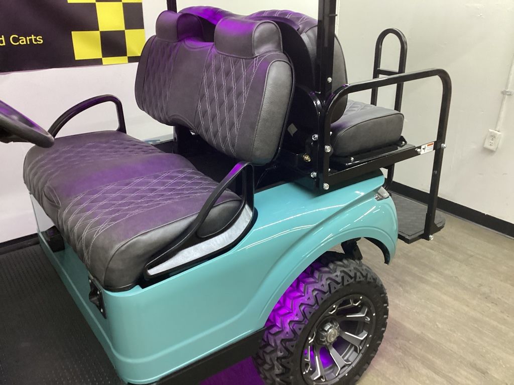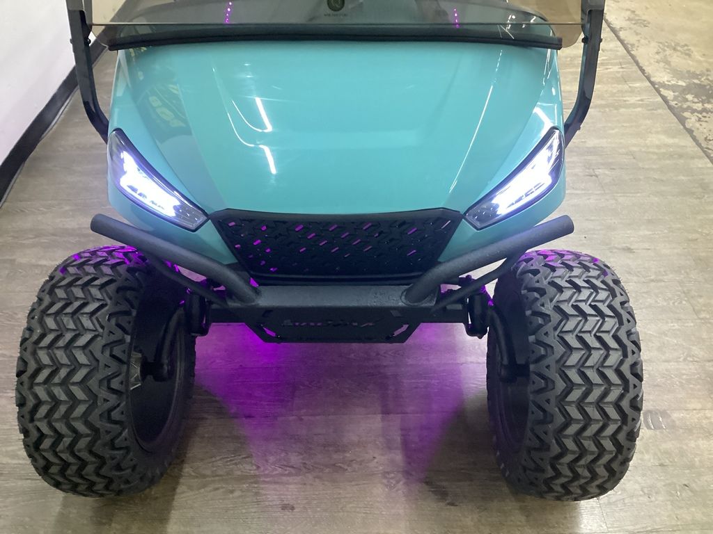 18 Months Warranty on Batteries – 12 Months Warranty on Cart – NEW Storm Body w/ Brush Guard – NEW DoubleTake Long Top w/ 3 Handles – NEW Coal Lazy Life Seats w/ Fold-down Rear Seat & Cupholders – NEW Lift Kit w/ 14” Sport Wheels & Tires – NEW LED Deluxe Light Package w/ Signals – 2 backseat seatbelts – NEW SOC Meter / Inner Basket NEW Million Color Light Kit – NEW ECO X Wired Sound Bar – NEW Navitas 440 AMP Controller / 5 KW AC Motor – NEW Fold-down Windshield – NEW 5 Panel Rear View Mirror