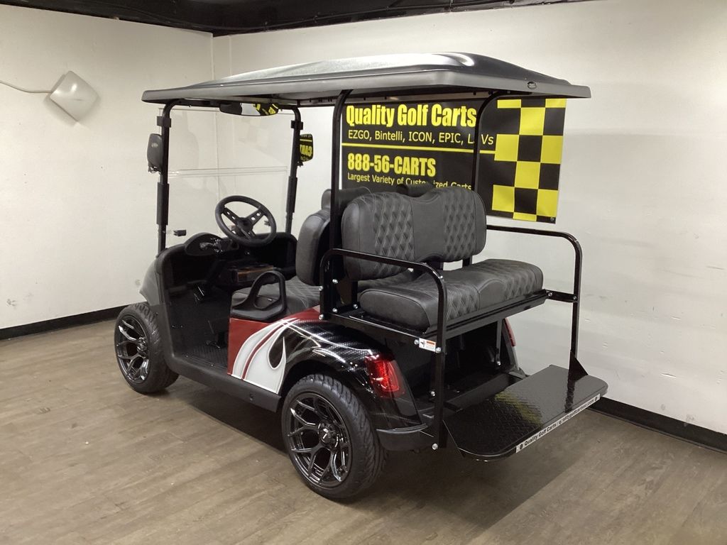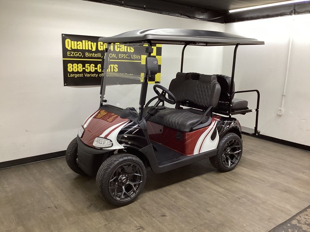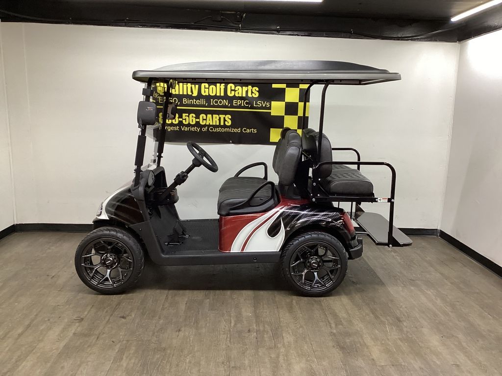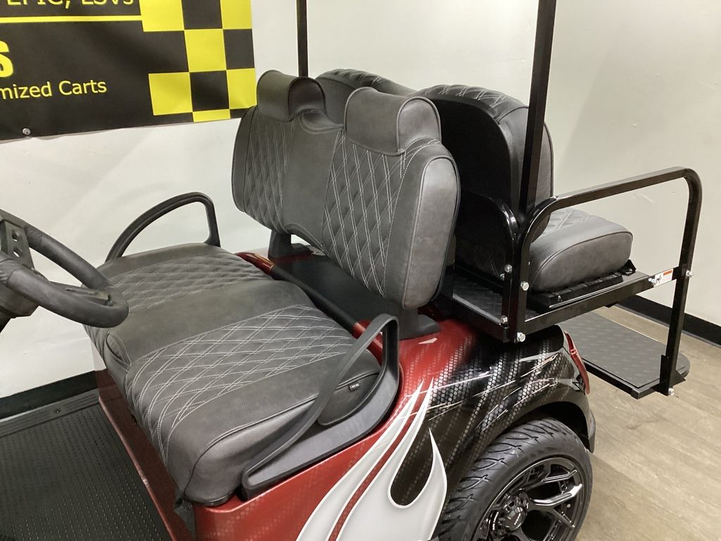 3 Years Warranty on Battery – 12 Months Warranty on Cart – NEW Custom Burgundy, White & Black Swirl Body w/ Long Graphite Top – NEW Coal Lazy Life Seats w/ Fold Down Rear Seat Kit – NEW 15″ Sport Wheels & Tires – NEW LED Deluxe Light Package w/ Signals – NEW Lighted Side Mirrors – NEW Fold Down Windshield – NEW SOC Meter / USB Port – NEW Convex Mirror – NEW Custom Steering Wheel