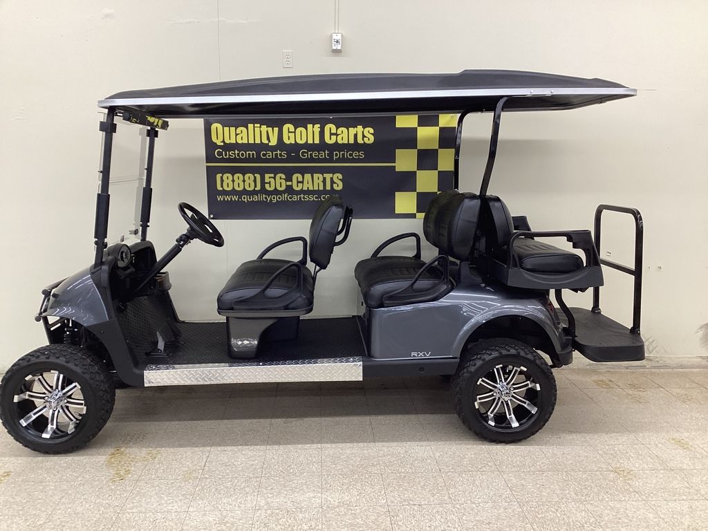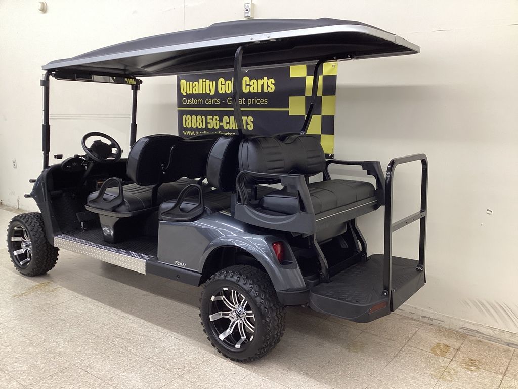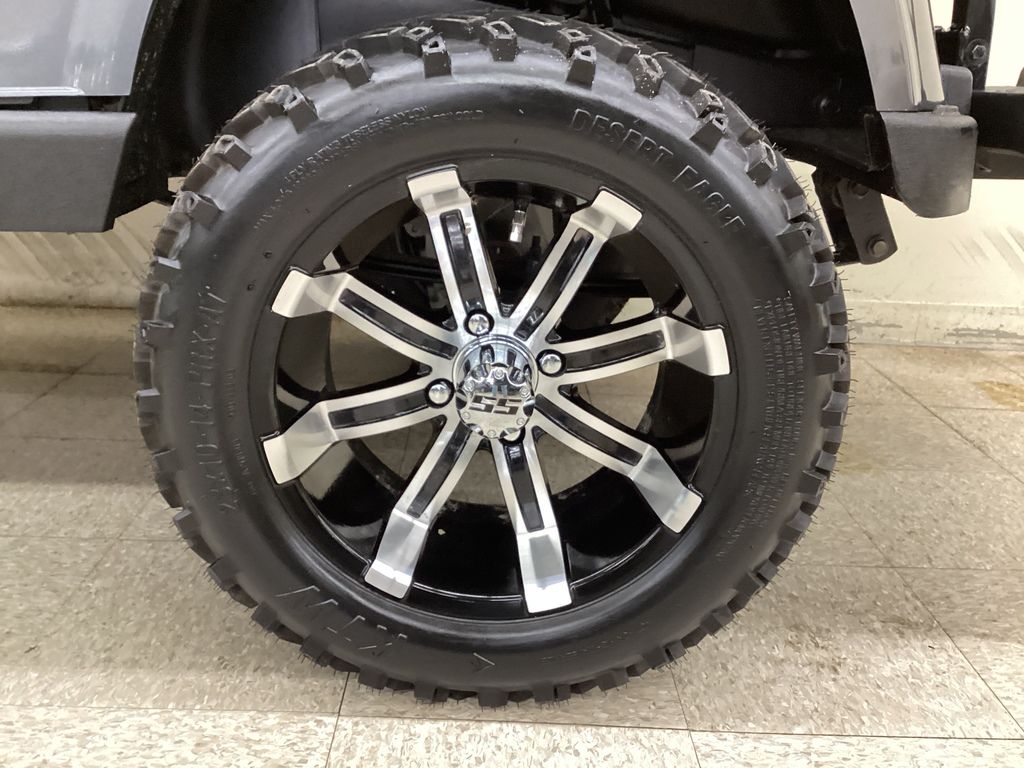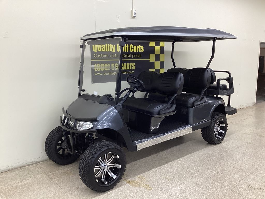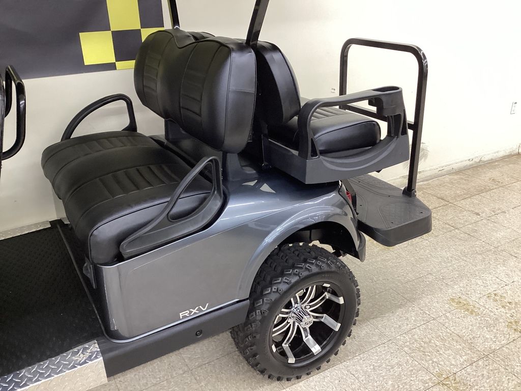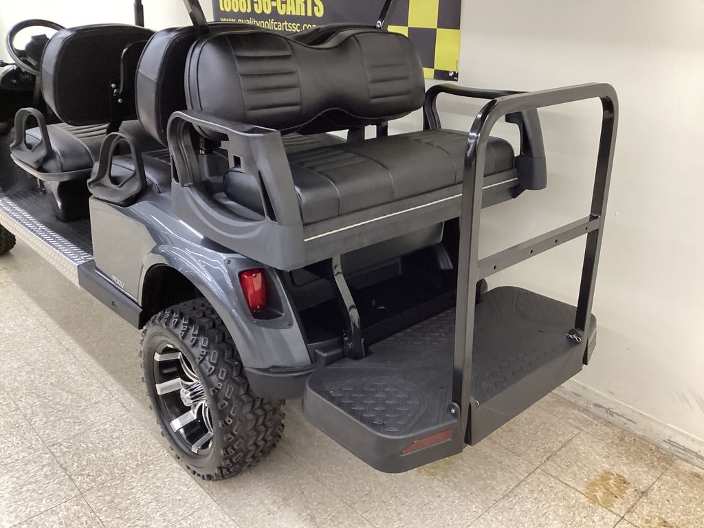 18 Months Warranty on Batteries – 12 Months Warranty on Cart – NEW Charcoal Gray Body w/Long Black Top – NEW Upgraded EZ GO Seats – NEW Executive Backseat Kit w/Cooler Insert & Safety Bar – NEW LED Deluxe Light Package w/Signals – NEW Lift Kit w/14″ Sport Wheels & Tires – NEW Fold Down Windshield – NEW Black Brush Guard – NEW 5 Panel Mirror – NEW SOC Meter