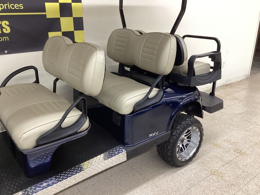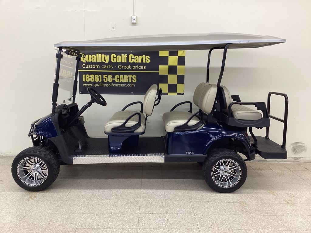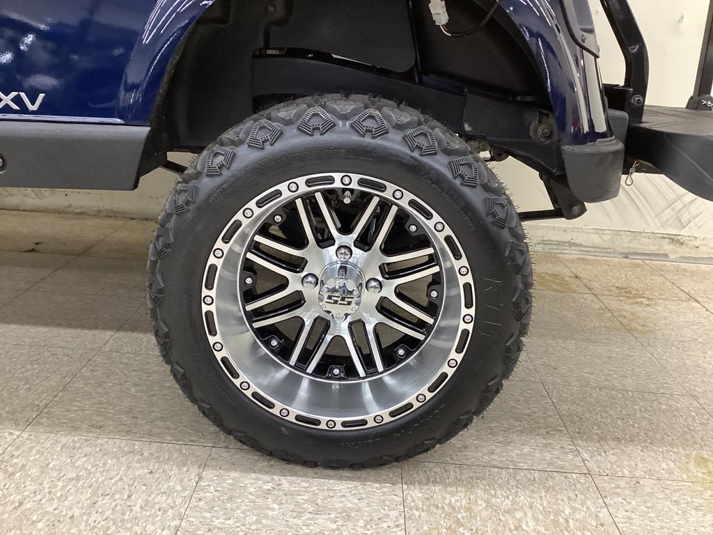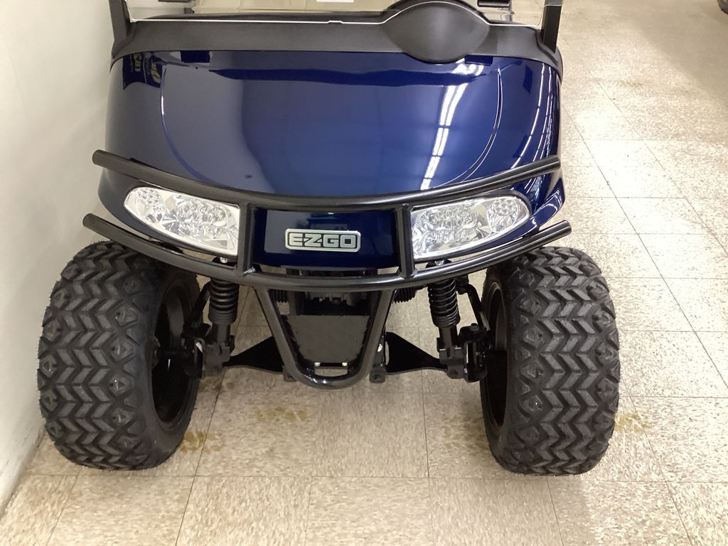 Lifted – NEW Patriot Blue Body – NEW Upgraded EZ GO Seats – NEW Executive Fold Down Backseat Kit – NEW LED Deluxe Light Package w/Signals – NEW Lift Kit w/14″ Sport Wheels and Tires – NEW Black Brush Guard – Ready To Go!!!