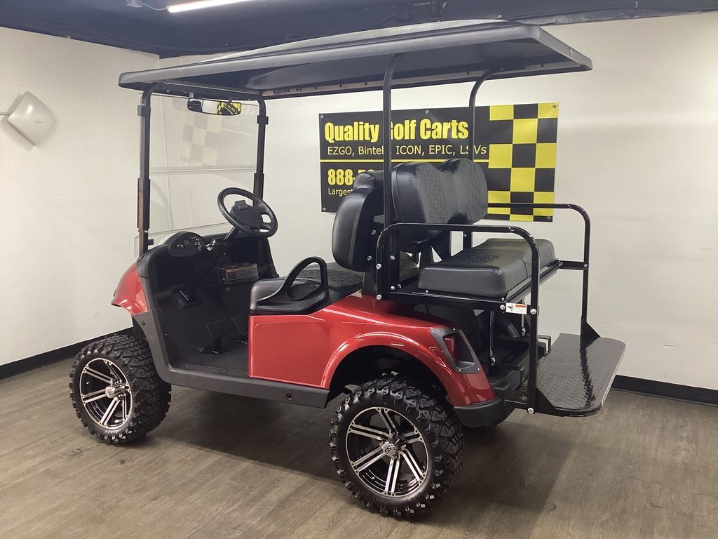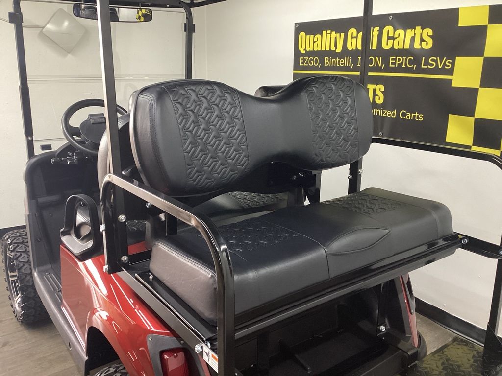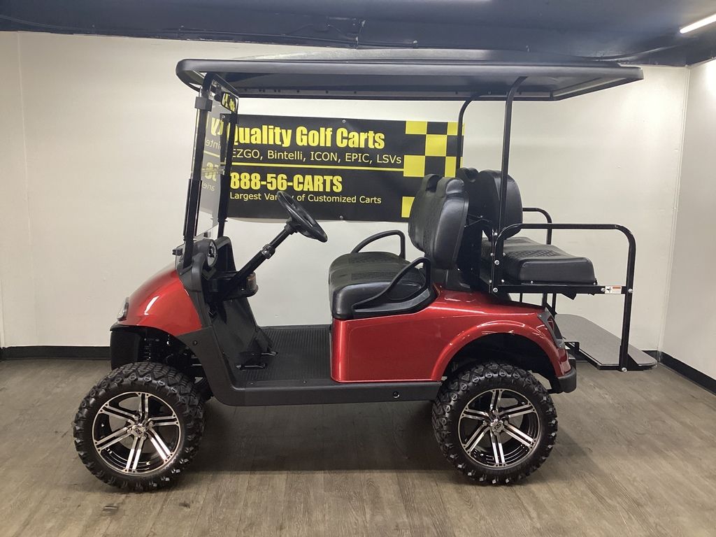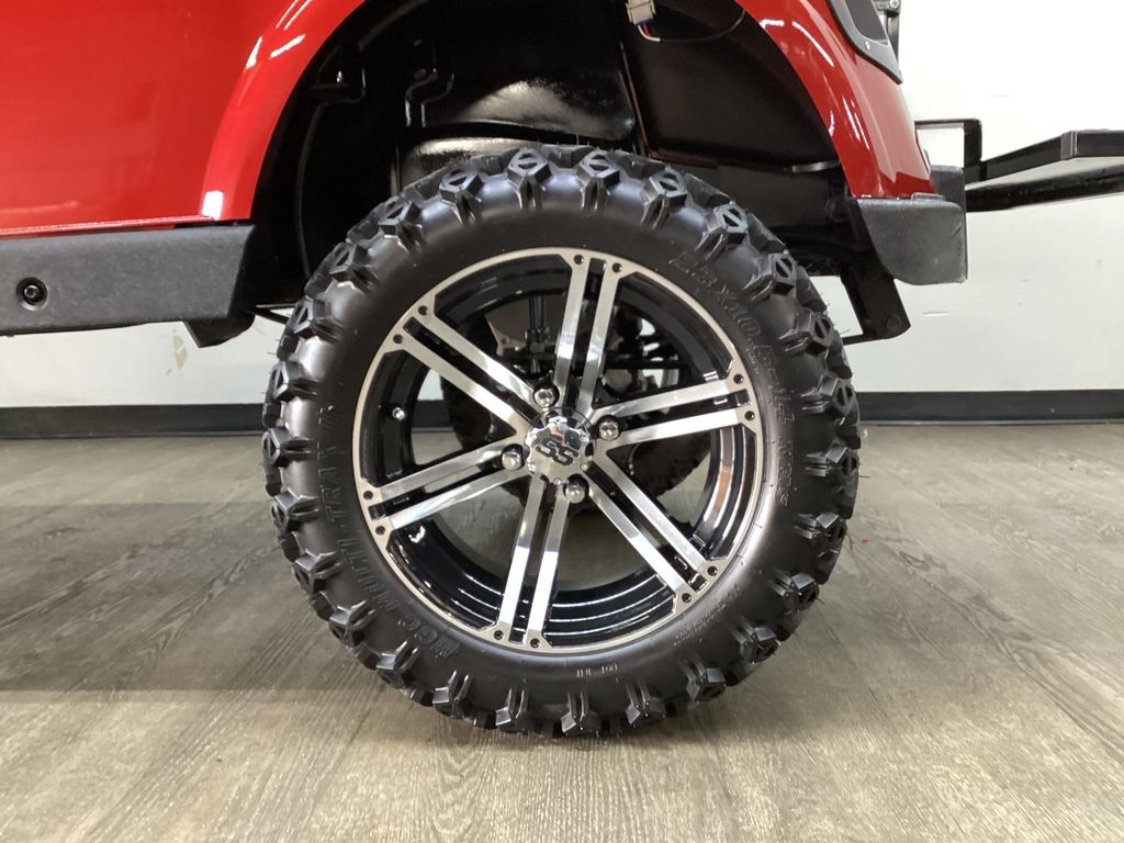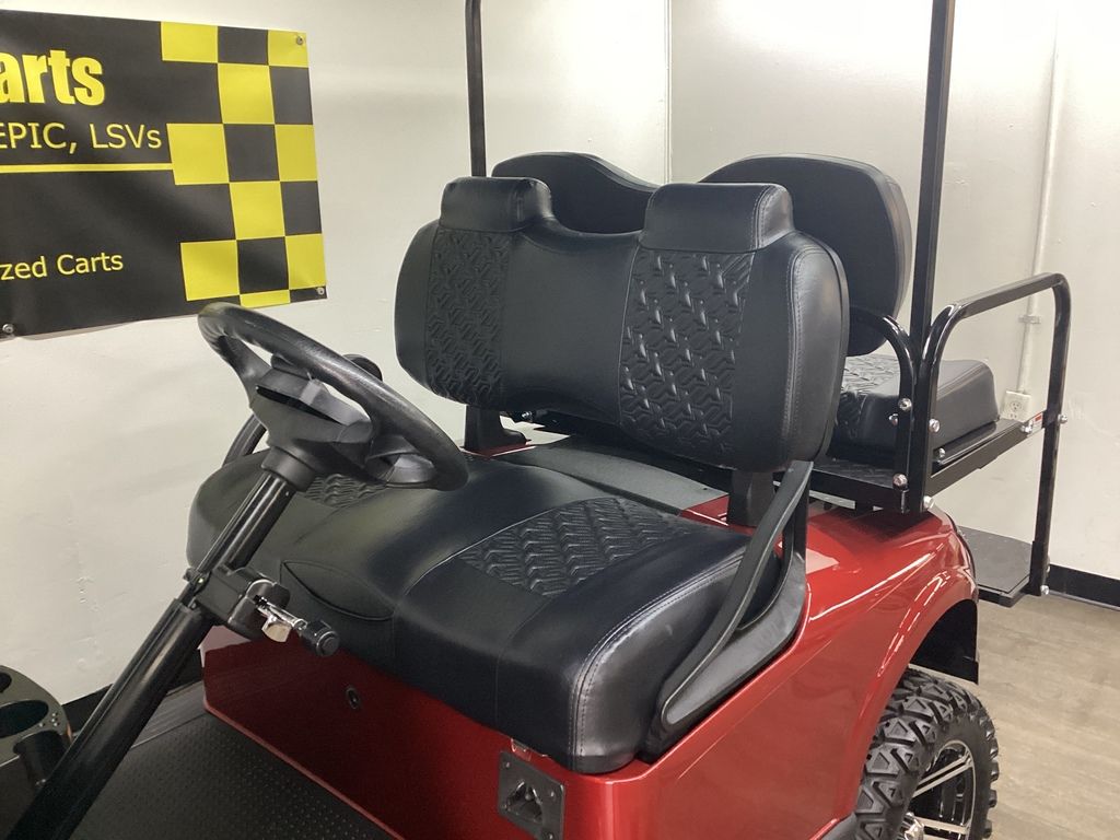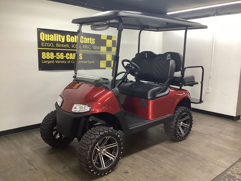 Lifted – EZ Go Lithium Battery – NEW Inferno Red Paint Job w/Long Black Top – NEW Black Executive Seats – NEW LED Deluxe Light Package w/Signals – NEW Lift Kit w/14″ Sport Wheels & Tires – EZ GO Lithium Battery – Ready To Go!