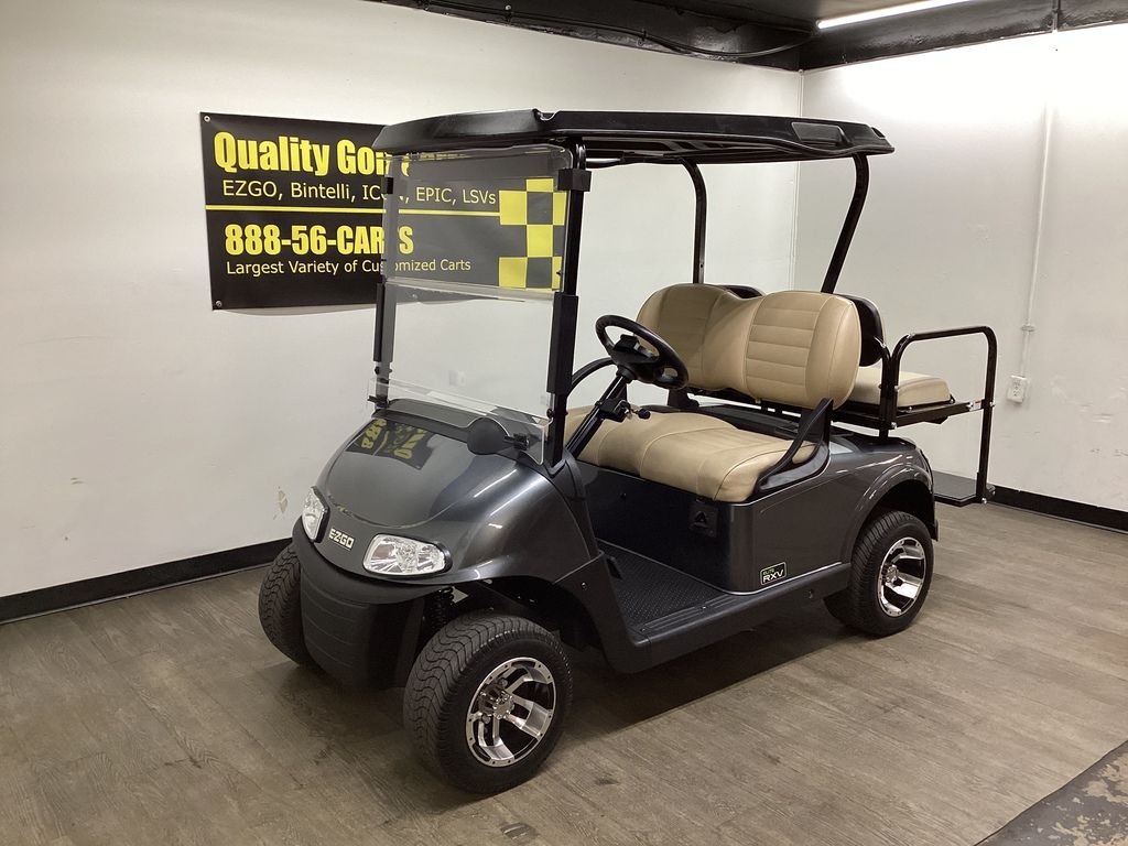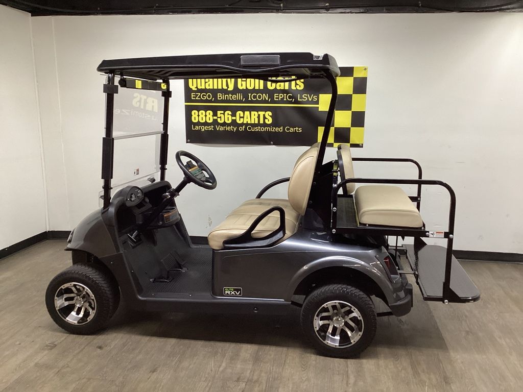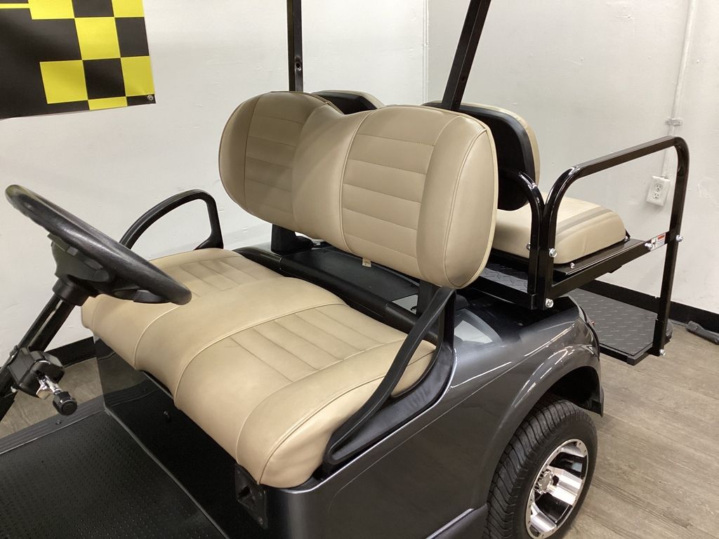 3 Years Warranty on Battery – 12 Months Warranty on Cart – Charcoal Gray Body w/ Short Black Top – Upgraded EZ GO Stone Front Seats – Stone Fold-down Rear Seat – NEW LED Deluxe Light Package w/ Signals – 10″ Sport Wheels & Tires – Fold-down Windshield – NEW Rear-view Mirror – NEW SOC Meter – USB Port