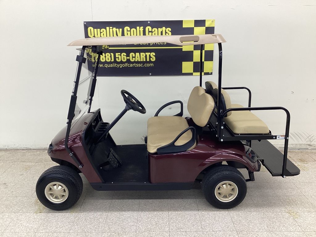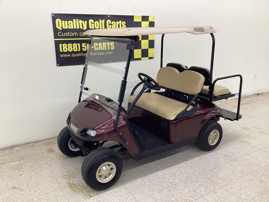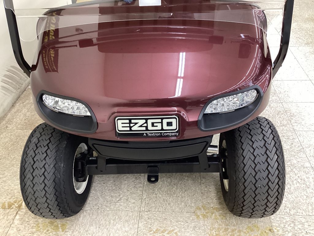 18 Months Warranty on Batteries – 6 Months Warranty on Cart – Burgundy Body w/Short Stone Top – Stone Seats w/Fold Down Rear Seat Kit – Fold Down Windshield – LED Headlights / Tail Lights – 5 Panel Mirror – Stock EZ GO Wheels & Tires