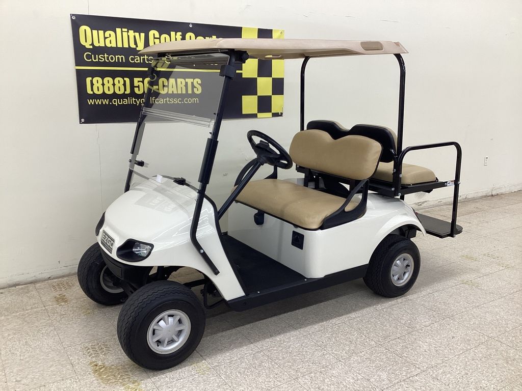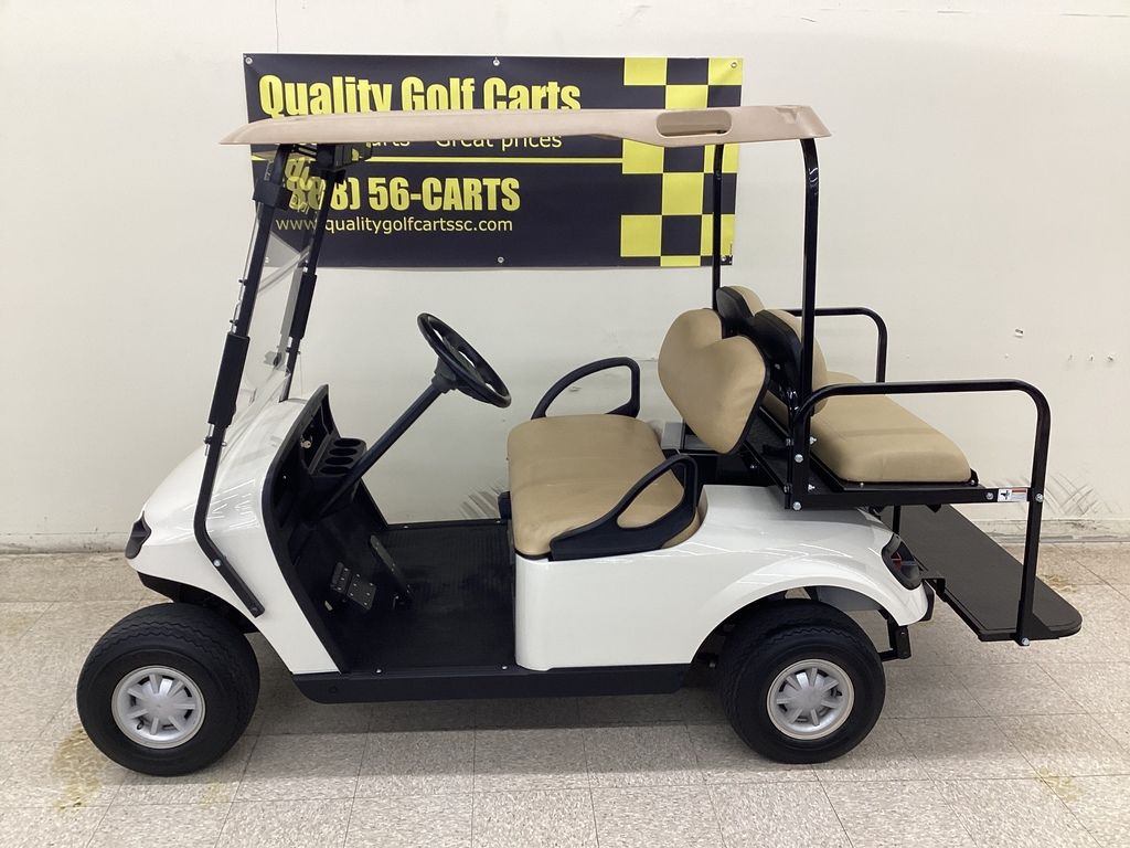 18 Months Warranty on Batteries – 6 Months Warranty on Cart – Ivory Body w/Short Stone Top – Stone Seats w/Fold Down Rear Seat Kit – LED Headlights – Fold own Windshield – 5 Panel Mirror – Stock Wheels & Tires