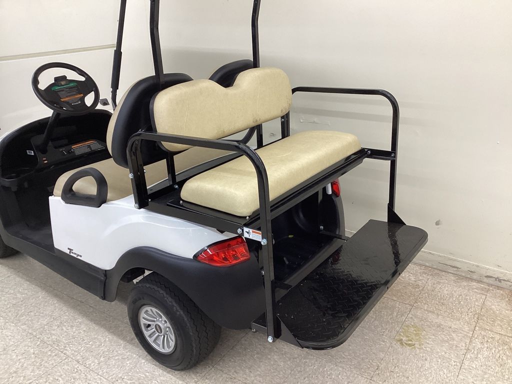 6 Months Warranty on Cart – White Body w/Short Stone Top – Stone Seats w/Fold Down Rear Seat Kit – NEW LED Headlights / Brake Lights – Fold Down Windshield – Fuel Injection – Serviced – Ready To Go!