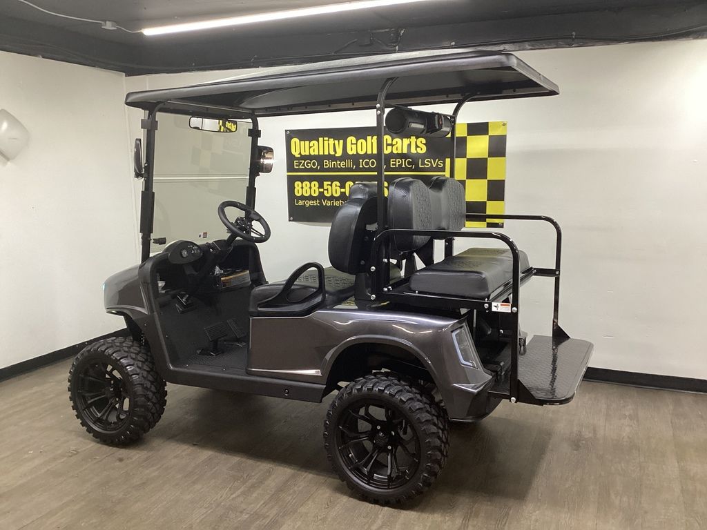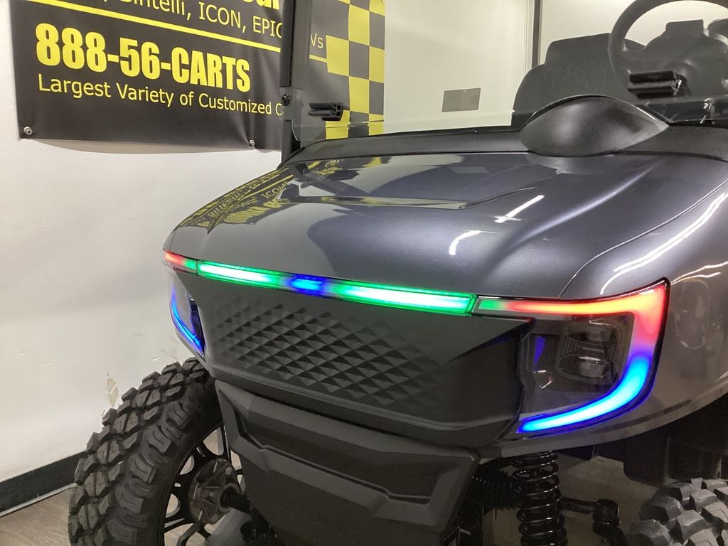 Lifted – NEW Custom Hyper Gray APEX Body w/ Long Top – NEW RGB Lighted Grill – NEW Tuxedo Executive Seats – NEW ECO Battery Pack Soundbar – NEW 15″ Sport Wheels & Tires – NEW LED Deluxe Light Package w/Signals – NEW Lighted Side Mirrors – EZ GO Lithium Battery – Ready to Go!