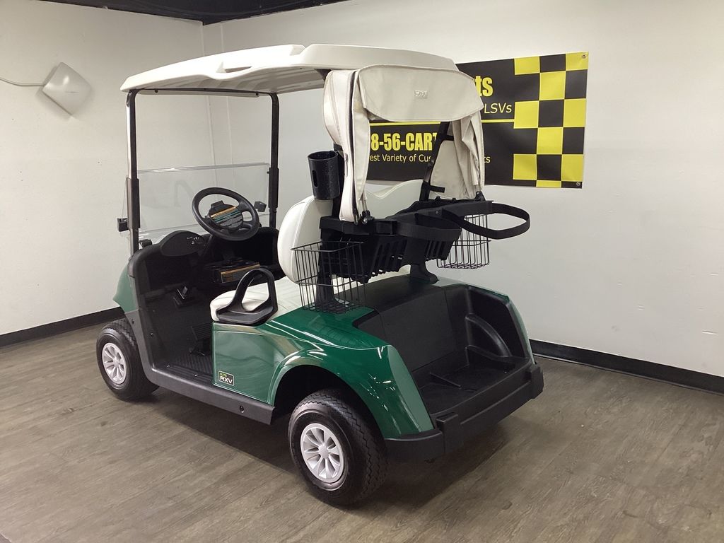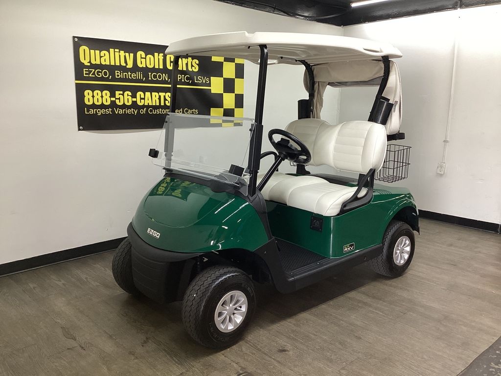 Non Lifted – Green Body w/ Short Top – Upgraded EZ GO Front Seats – Fold Down Windshield – Freedom Speed Code – EZ GO Lithium Battery – Value Cart – Ready To Go!