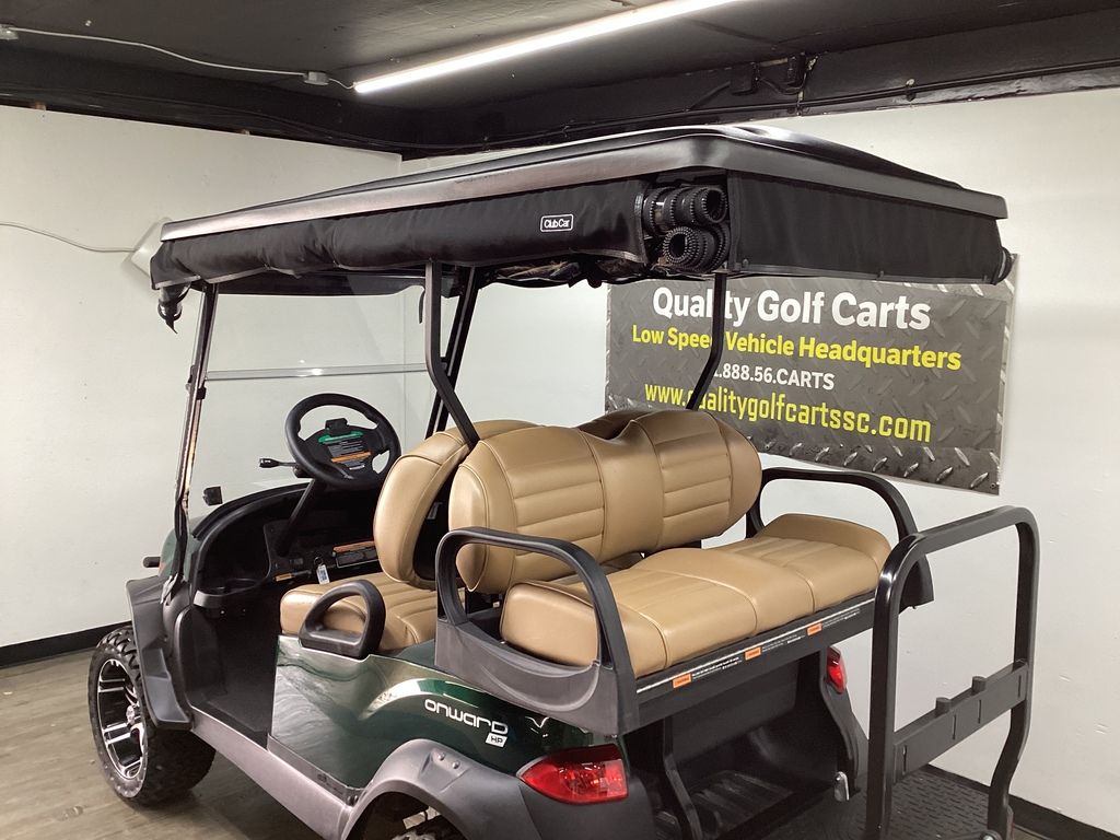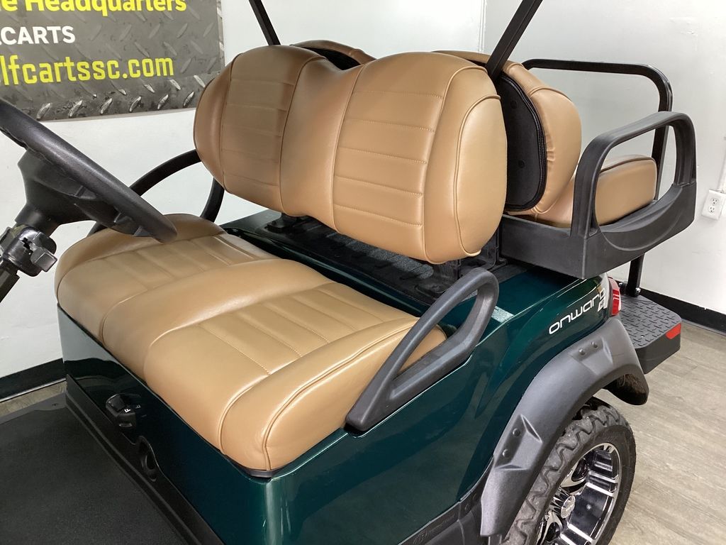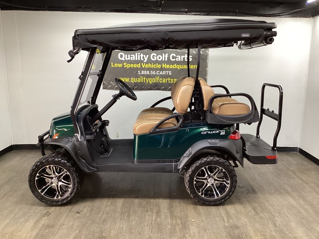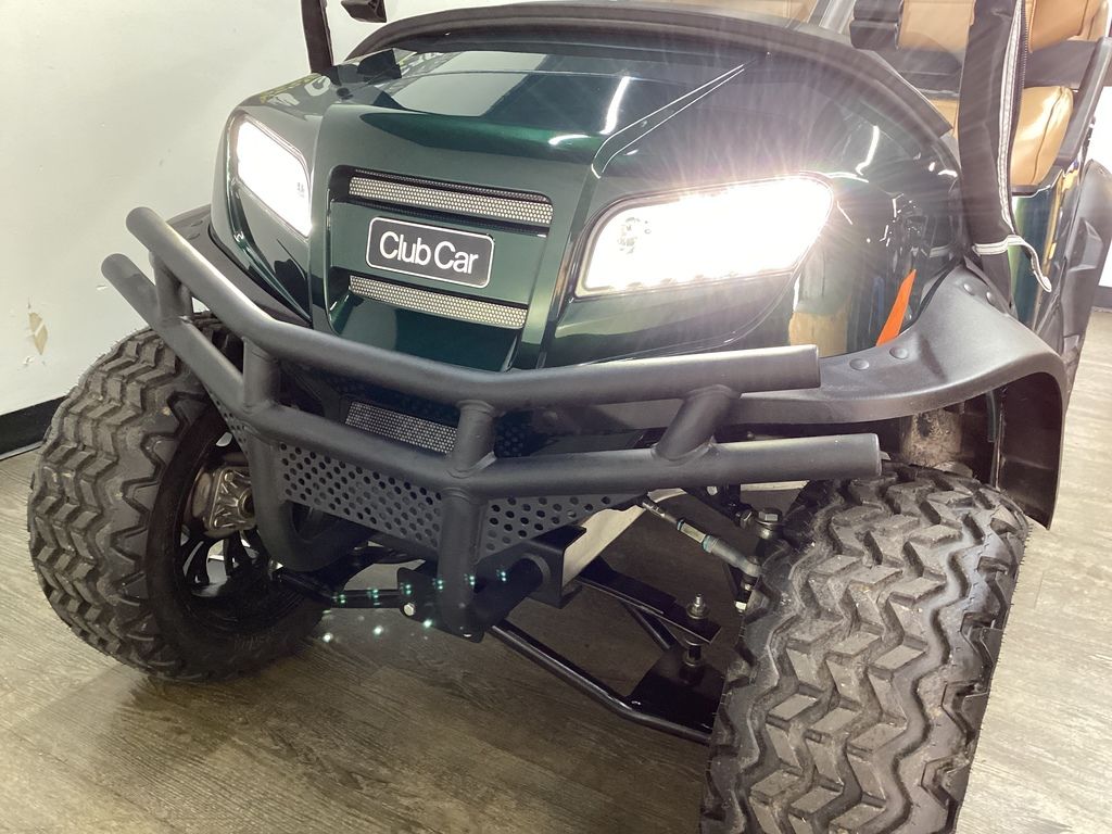 12 Months Warranty on Lithium Battery – 12 Months Warranty on Cart – 3 Months Warranty on Charger – Green Body w/Long Black Top – Brush Guard – Custom Pleated Brown seats w/ Deluxe Fold-down Rear Seat – Lift Kit w/14″ Sport Wheels & Tires – LED Light Package w/ Turn Signals – Fold-down Windshield – Rear-view mirror – State of Charge meter – Black Club Car Driving Enclosure