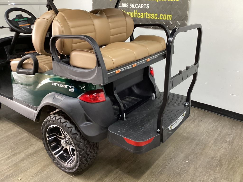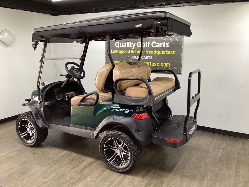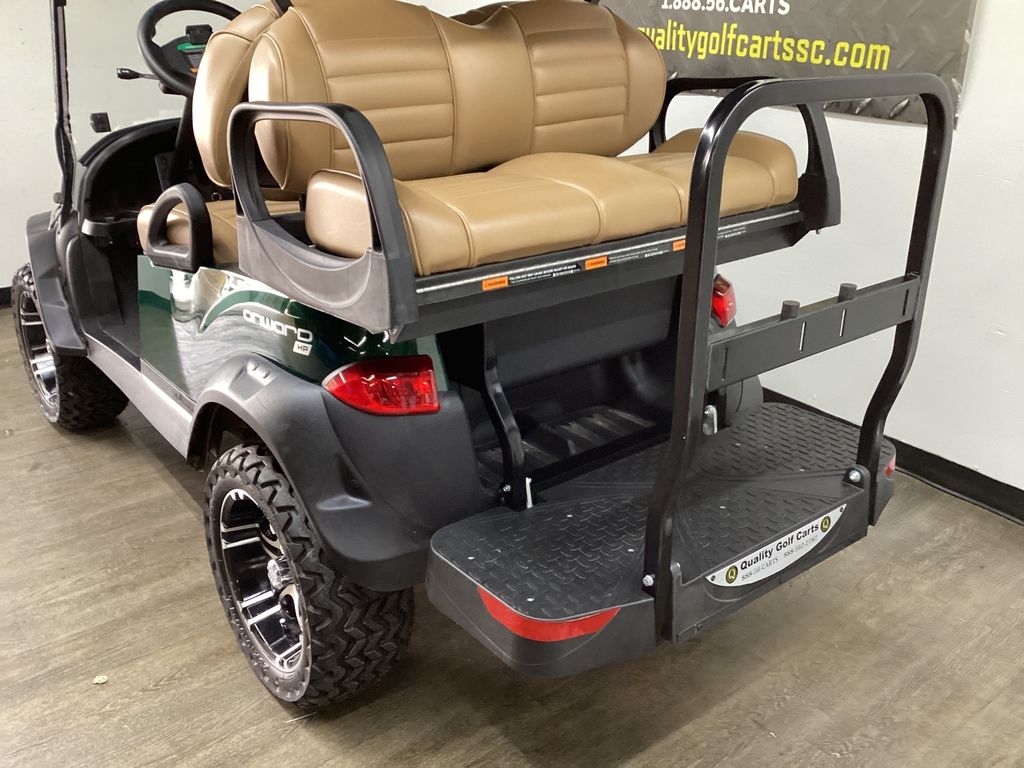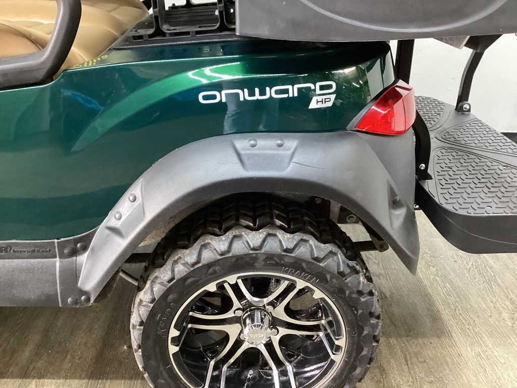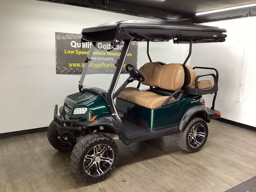 12 Months Warranty on Lithium Battery – 12 Months Warranty on Cart – 3 Months Warranty on Charger – Green Body w/Long Black Top – Brush Guard – Custom Pleated Brown seats w/ Deluxe Fold-down Rear Seat – Lift Kit w/14″ Sport Wheels & Tires – LED Light Package w/ Turn Signals – Fold-down Windshield – Rear-view mirror – State of Charge meter – Black Club Car Driving Enclosure