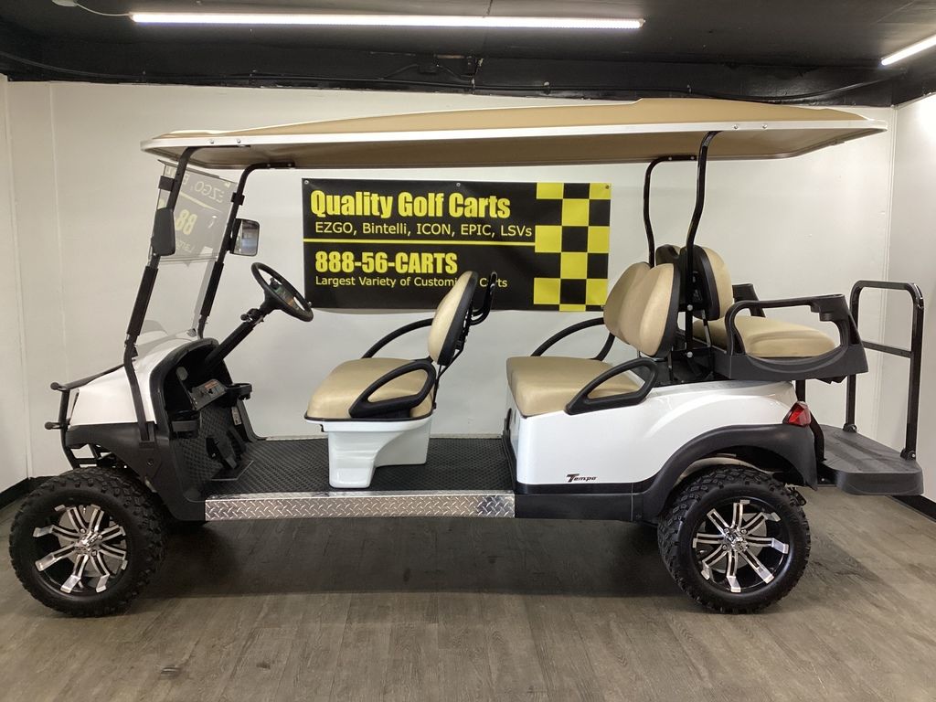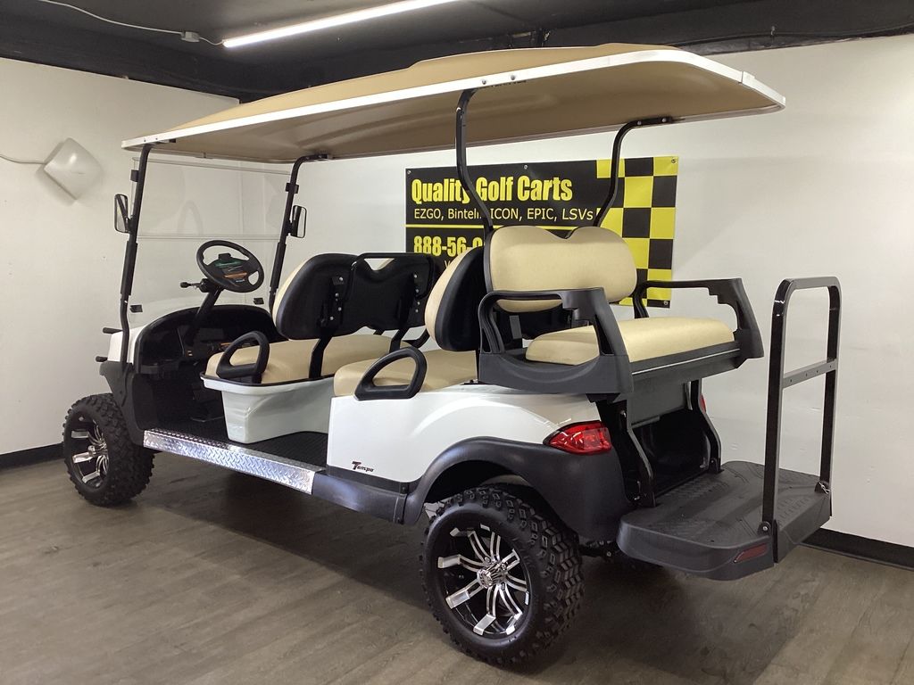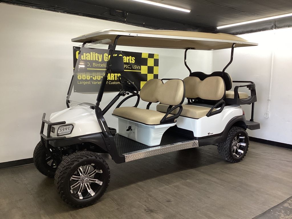 6 Months Warranty on Cart – Original White Body w/ Long Stone Top – Stone Seats – NEW Executive Backseat kit w/Cooler Insert / Safety Bar / Cupholders – NEW Lift Kit w/ 14″ Sport Wheels & Tires – NEW LED Deluxe Light Package w/ Signals – NEW Fold Down Windshield – Black Brush Guard -Side Mirrors – Fuel Injection – Serviced – Ready To Go!