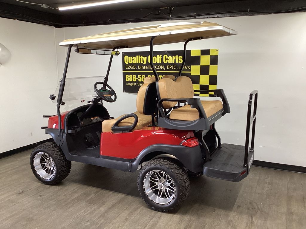 6 Months Warranty on Cart – NEW Red Paint Job w/Long Stone Top – NEW Executive Fold down rear seat kit w/Insert – NEW Upgraded Seats – Brush Guard – NEW Lift Kit w/14″ Sport Wheels & Tires – NEW LED Deluxe light package w/Turn Signals – Rear View Mirror – Heavy Duty Springs – NEW Fold down windshield – Fuel Injection – Serviced – Ready To Go!