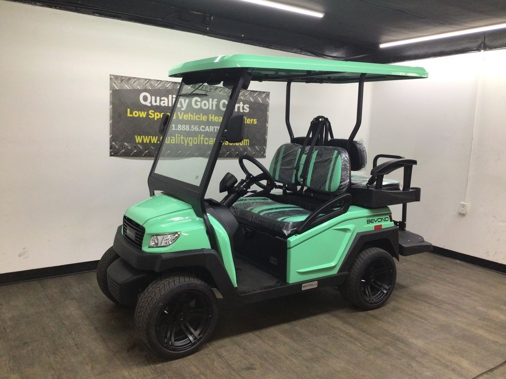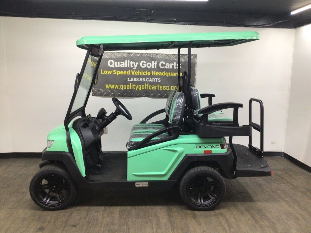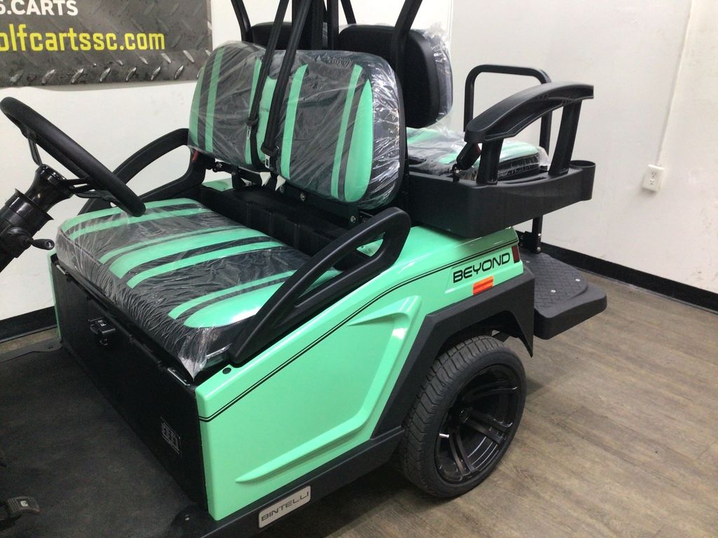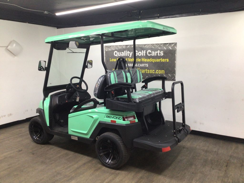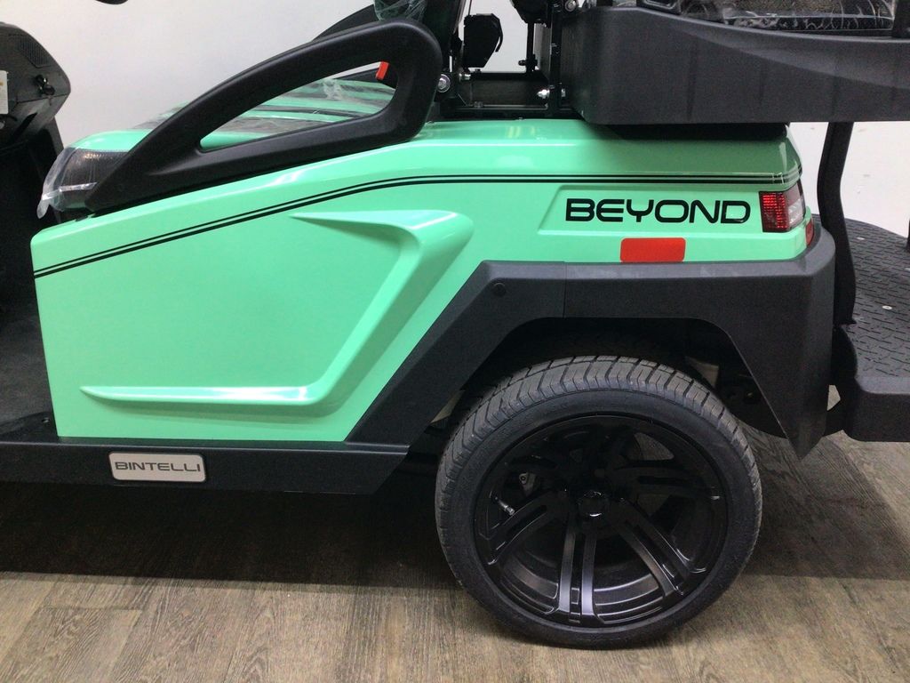 This Bintelli Beyond 4PR street legal golf cart is the newest addition to the Bintelli fleet and it is FULLY loaded! Complete with an aluminum frame, aluminum roof supports, AC motor, LED lighting, 14? wheels, a Bluetooth sound system, reverse camera, hydraulic disc brakes, two-tone premium seats, on-board smart charger, dual USB plugs, extended roof, rear flip seat, head lights, tail lights, turn signals, DOT windshield with wiper, DOT tires, DOT 3-point seat belts, and a 17 digit vin number.