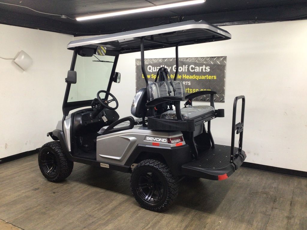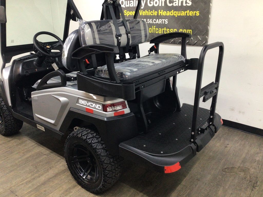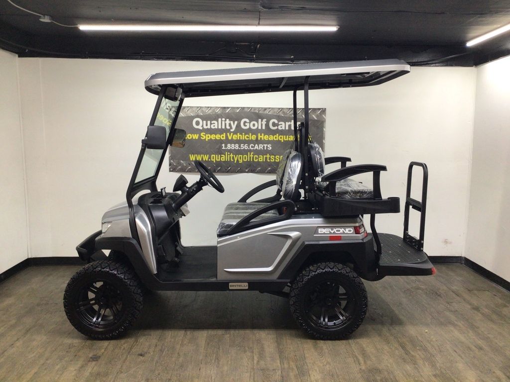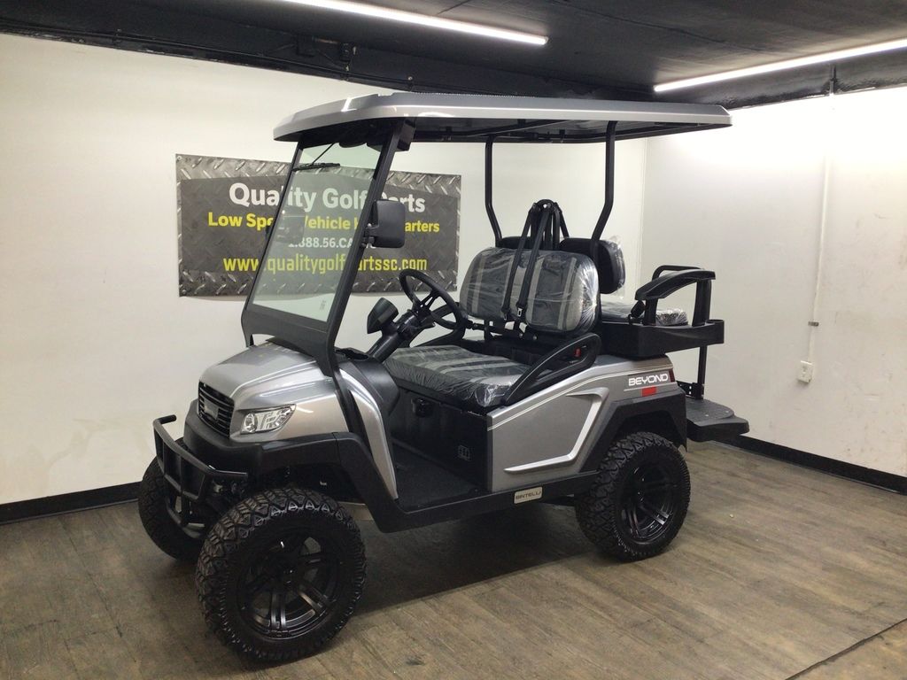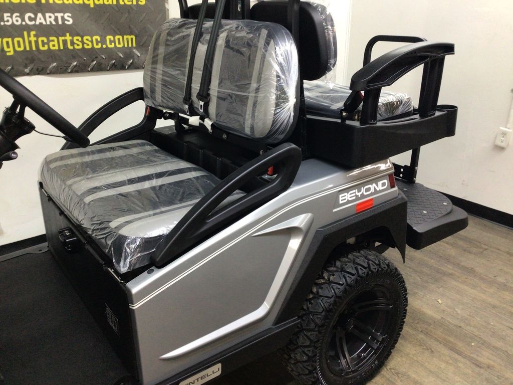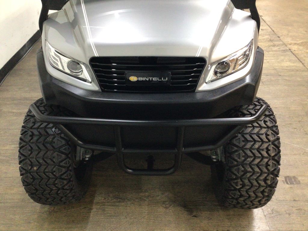 This Bintelli Beyond Lifted 4PR street legal golf cart is the newest addition to the Bintelli fleet and it is FULLY loaded! Complete with an aluminum frame, aluminum roof supports, AC motor, LED lighting, 23? tires, a Bluetooth sound system, reverse camera, hydraulic disc brakes, two-tone premium seats, on-board smart charger, dual USB plugs, extended roof, rear flip seat, head lights, tail lights, turn signals, DOT windshield with wiper, DOT tires, DOT 3-point seat belts, and a 17 digit vin number.