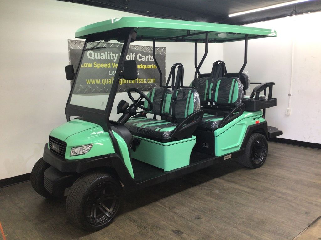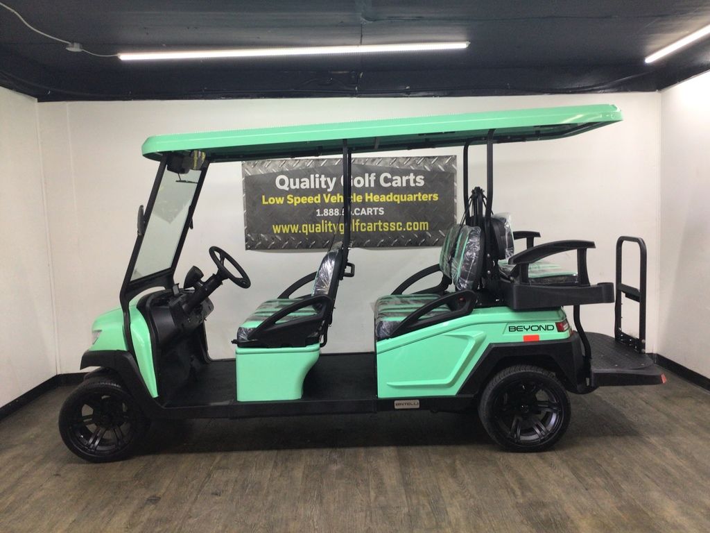 This Bintelli Beyond 6PR street legal golf cart is the newest addition to the Bintelli fleet and it is FULLY loaded! Complete with an aluminum frame, aluminum roof supports, AC motor, LED lighting, 14? wheels, a Bluetooth sound system, reverse camera, hydraulic disc brakes, two-tone premium seats, on-board smart charger, dual USB plugs, extended roof, rear flip seat, head lights, tail lights, turn signals, DOT windshield with wiper, DOT tires, DOT 3-point seat belts, and a 17 digit vin number.