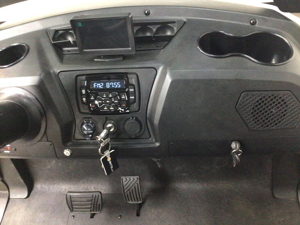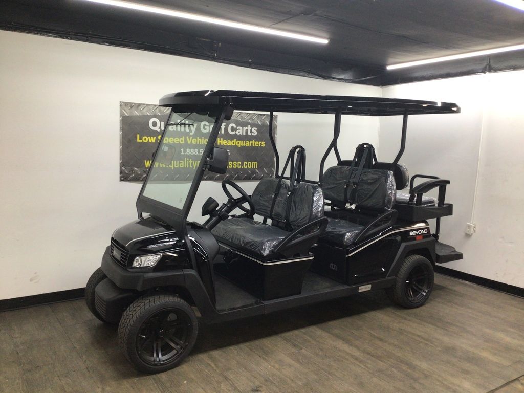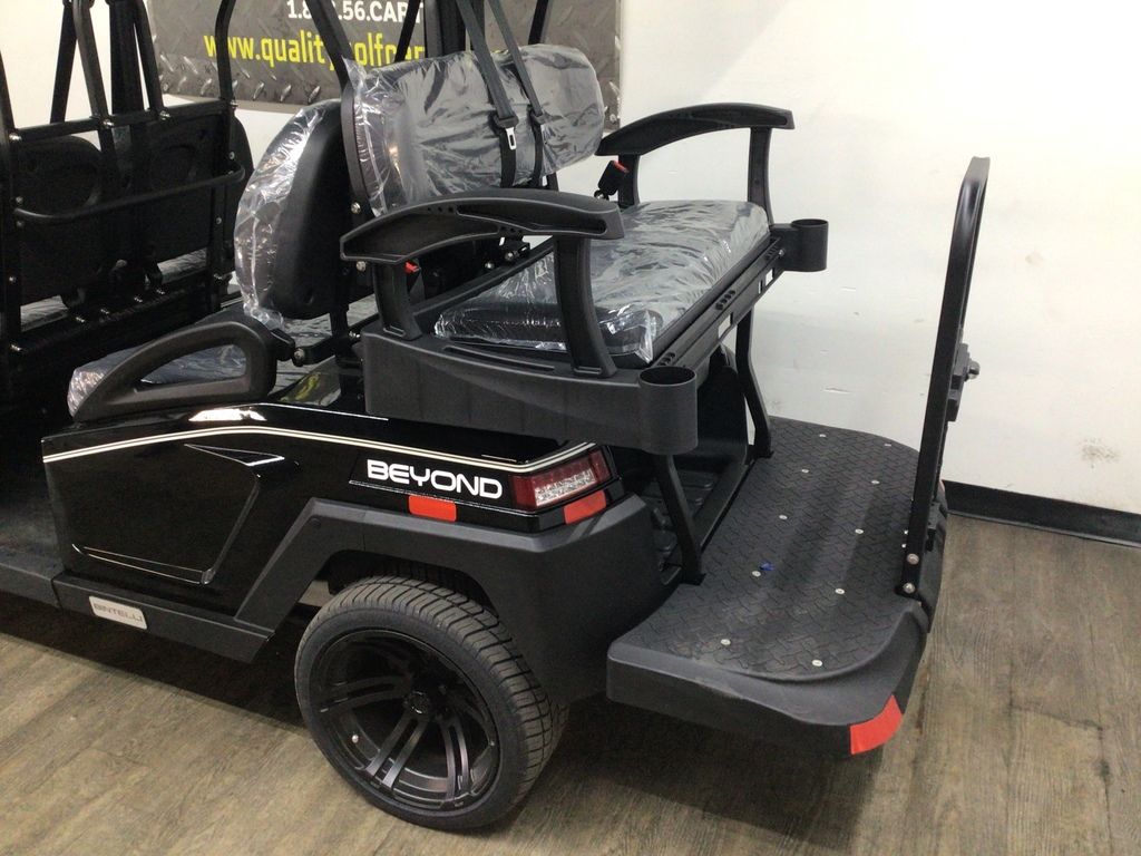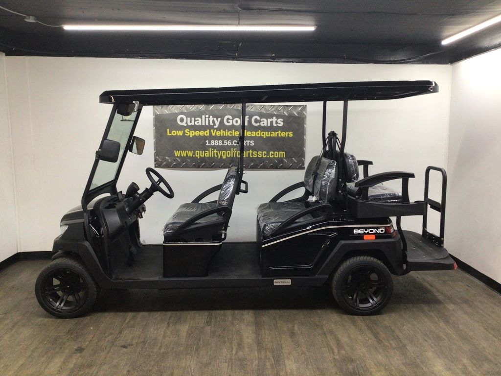This Bintelli Beyond 6PR street legal golf cart is the newest addition to the Bintelli fleet and it is FULLY loaded! Complete with an aluminum frame, aluminum roof supports, AC motor, LED lighting, 14? wheels, a Bluetooth sound system, reverse camera, hydraulic disc brakes, two-tone premium seats, on-board smart charger, dual USB plugs, extended roof, rear flip seat, head lights, tail lights, turn signals, DOT windshield with wiper, DOT tires, DOT 3-point seat belts, and a 17 digit vin number.
