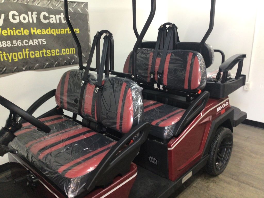 This Bintelli Beyond 6PR street legal golf cart is the newest addition to the Bintelli fleet and it is FULLY loaded! Complete with an aluminum frame, aluminum roof supports, AC motor, LED lighting, 14? wheels, a Bluetooth sound system, reverse camera, hydraulic disc brakes, two-tone premium seats, on-board smart charger, dual USB plugs, extended roof, rear flip seat, head lights, tail lights, turn signals, DOT windshield with wiper, DOT tires, DOT 3-point seat belts, and a 17 digit vin number.