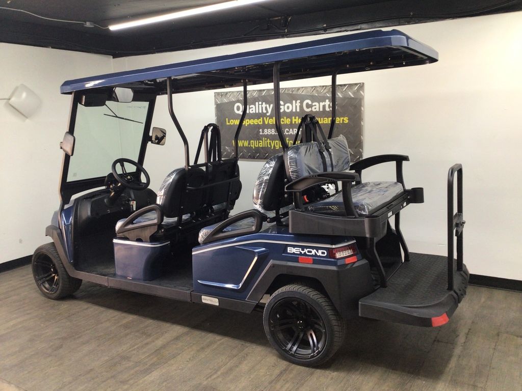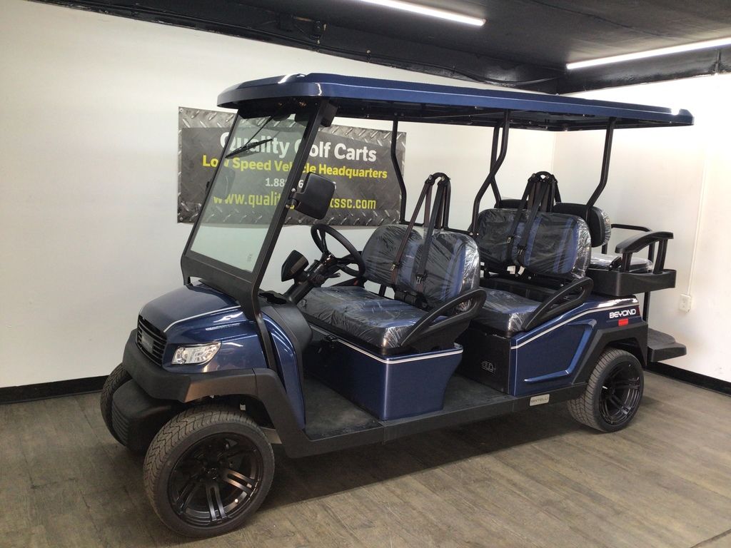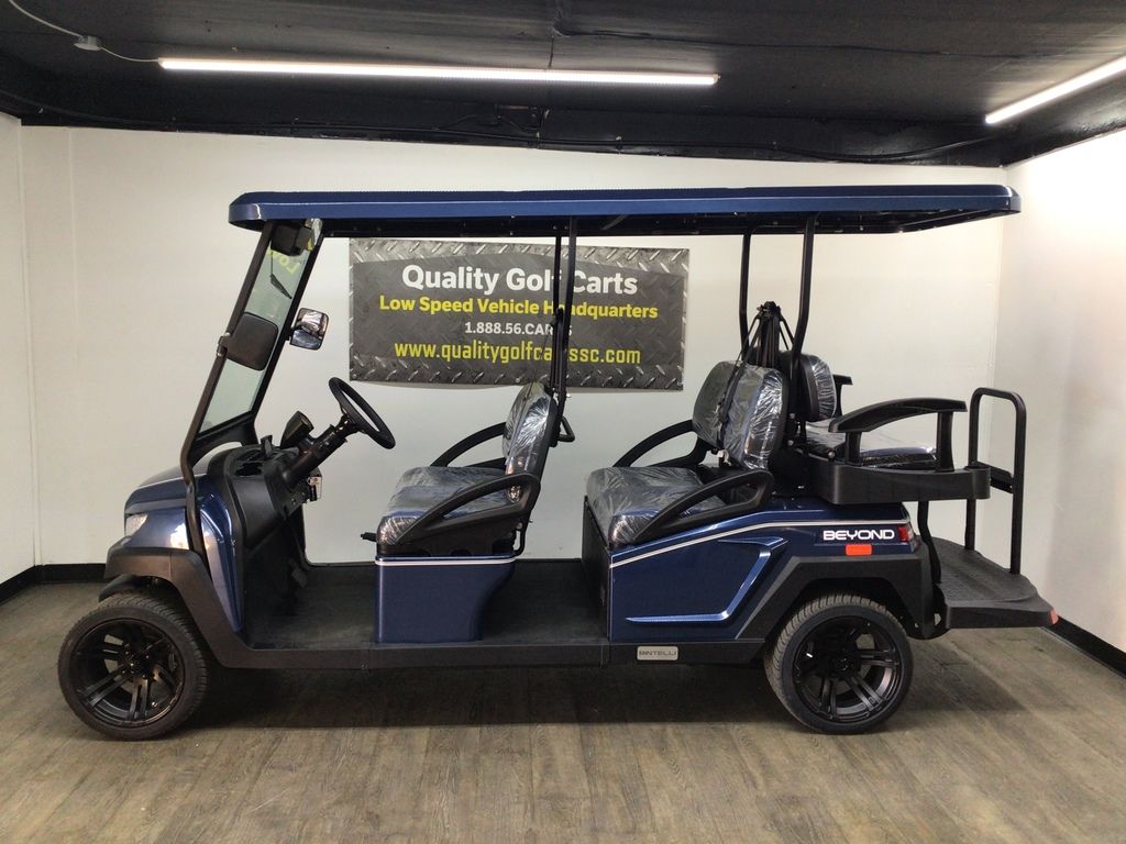 This Bintelli Beyond 6PR street legal golf cart is the newest addition to the Bintelli fleet and it is FULLY loaded! Complete with an aluminum frame, aluminum roof supports, AC motor, LED lighting, 14? wheels, a Bluetooth sound system, reverse camera, hydraulic disc brakes, two-tone premium seats, on-board smart charger, dual USB plugs, extended roof, rear flip seat, head lights, tail lights, turn signals, DOT windshield with wiper, DOT tires, DOT 3-point seat belts, and a 17 digit vin number.
