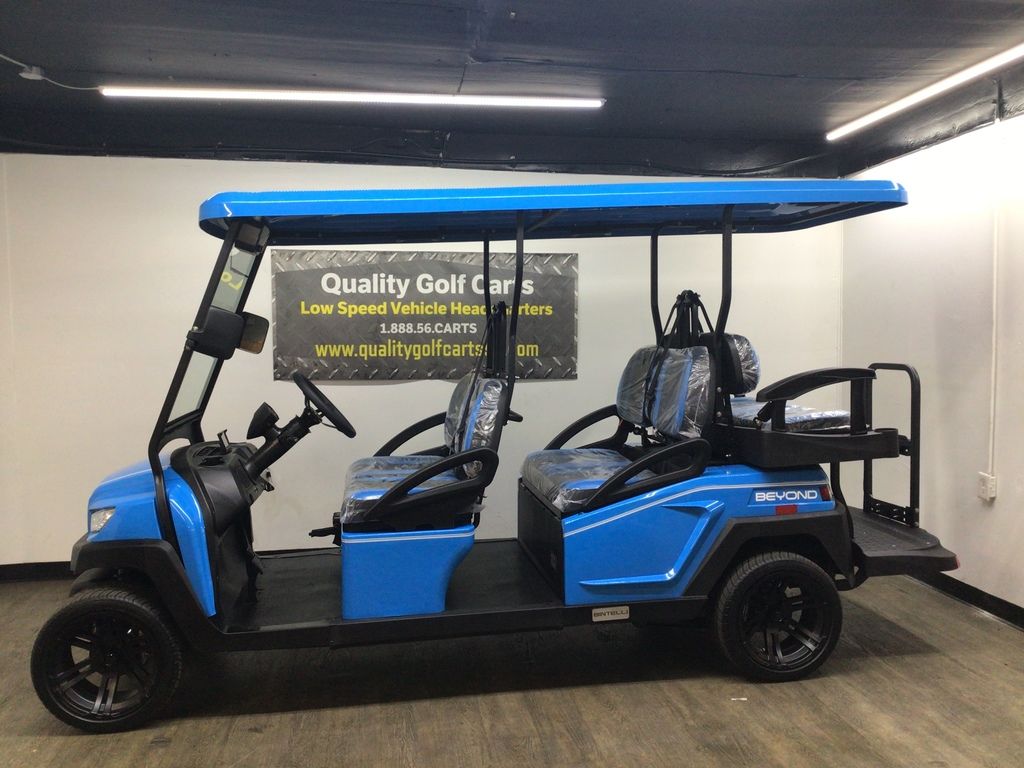 This Bintelli Beyond 6PR street legal golf cart is the newest addition to the Bintelli fleet and it is FULLY loaded! Complete with an aluminum frame, aluminum roof supports, AC motor, LED lighting, 14? wheels, a Bluetooth sound system, reverse camera, hydraulic disc brakes, two-tone premium seats, on-board smart charger, dual USB plugs, extended roof, rear flip seat, head lights, tail lights, turn signals, DOT windshield with wiper, DOT tires, DOT 3-point seat belts, and a 17 digit vin number.