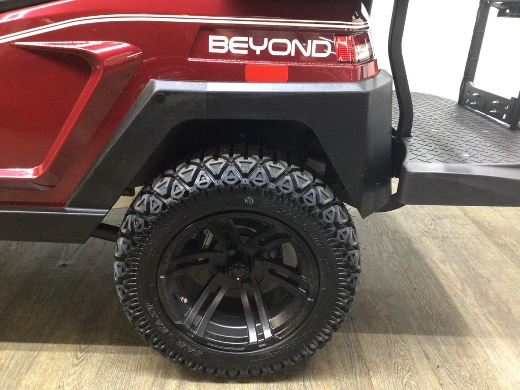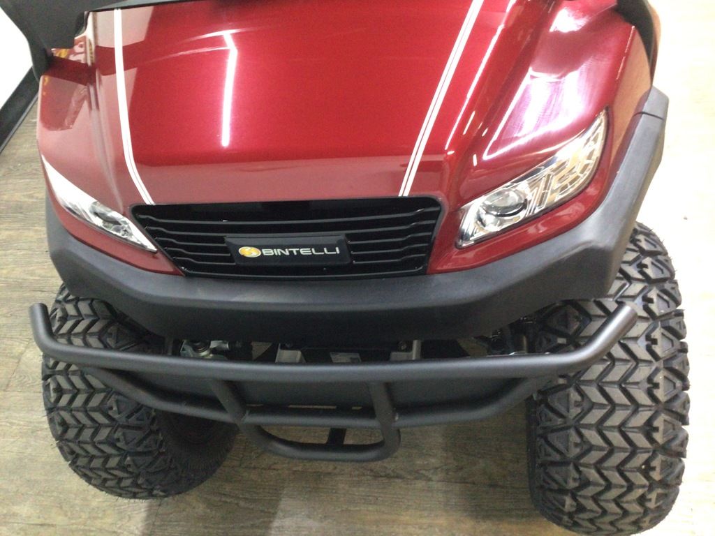 This Bintelli Beyond Lifted 6PR street legal golf cart is the newest addition to the Bintelli fleet and it is FULLY loaded! Complete with an aluminum frame, aluminum roof supports, AC motor, LED lighting, 22? tires, a Bluetooth sound system, reverse camera, hydraulic disc brakes, two-tone premium seats, on-board smart charger, dual USB plugs, extended roof, rear flip seat, head lights, tail lights, turn signals, DOT windshield with wiper, DOT tires, DOT 3-point seat belts, and a 17 digit vin number.