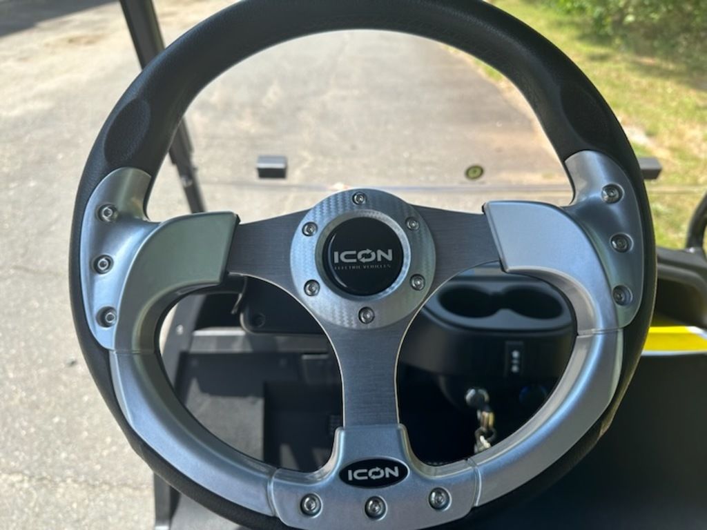 The ICON® i40 four-seater golf cart is the epitome of perfection when it comes to residential and commercial needs. Whether you’re taking your friends to lunch or transporting potential clients’, the ICON® i40 is stylish and extremely comfortable. Plus, it’s loaded with premium features like 10” aluminum wheels, 4-wheel disc brakes, powder-coated steel chassis, lights, turn signals, high-speed rear ends, durable front and rear bumpers, painted rooftops, horns, digital gauges, and more!