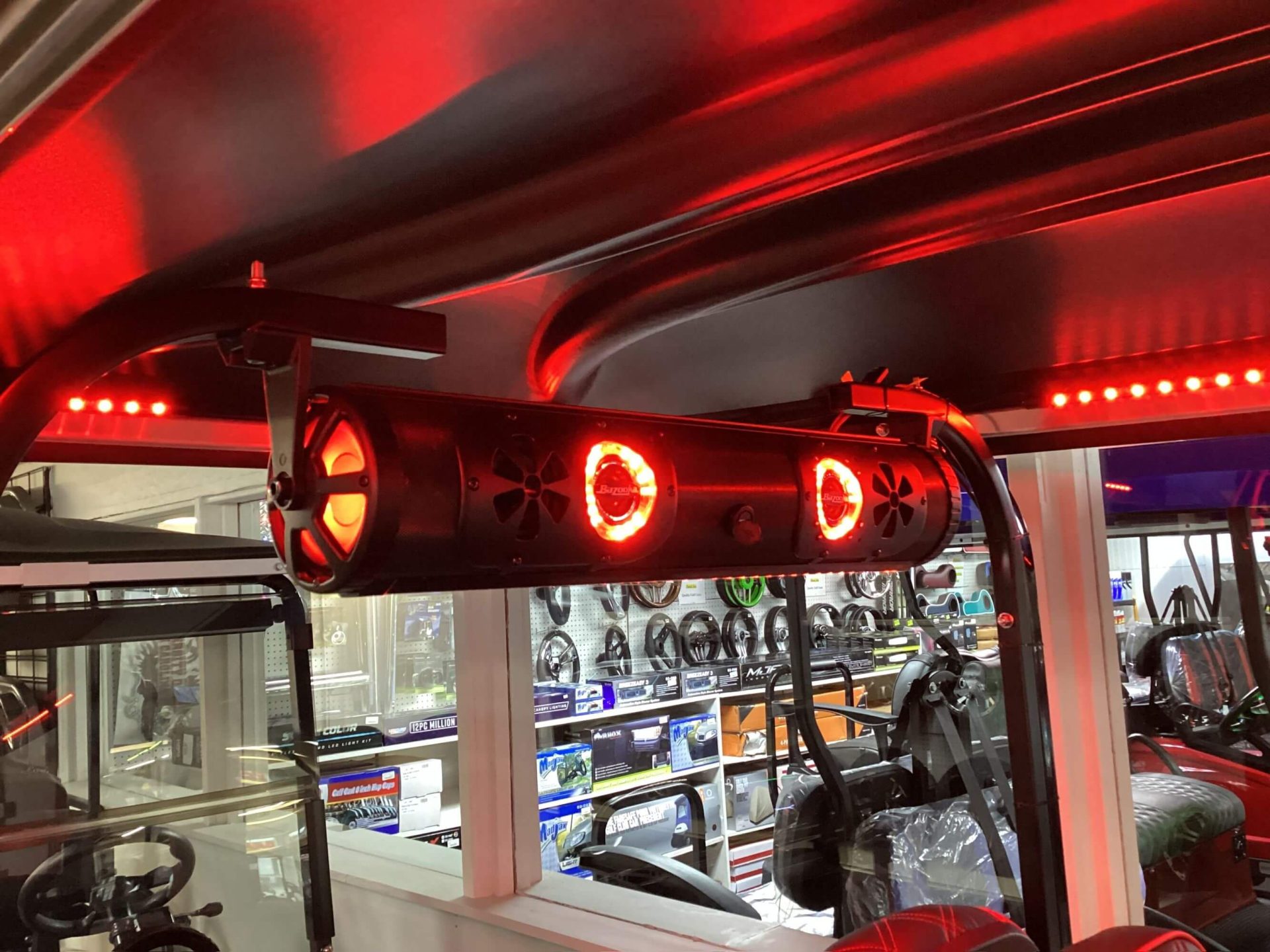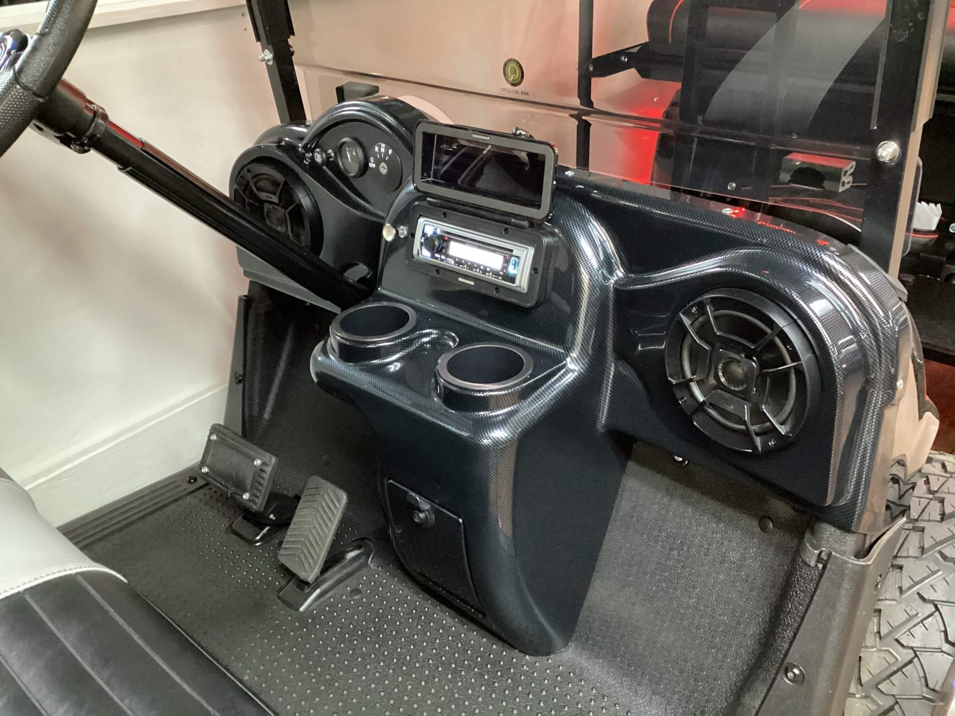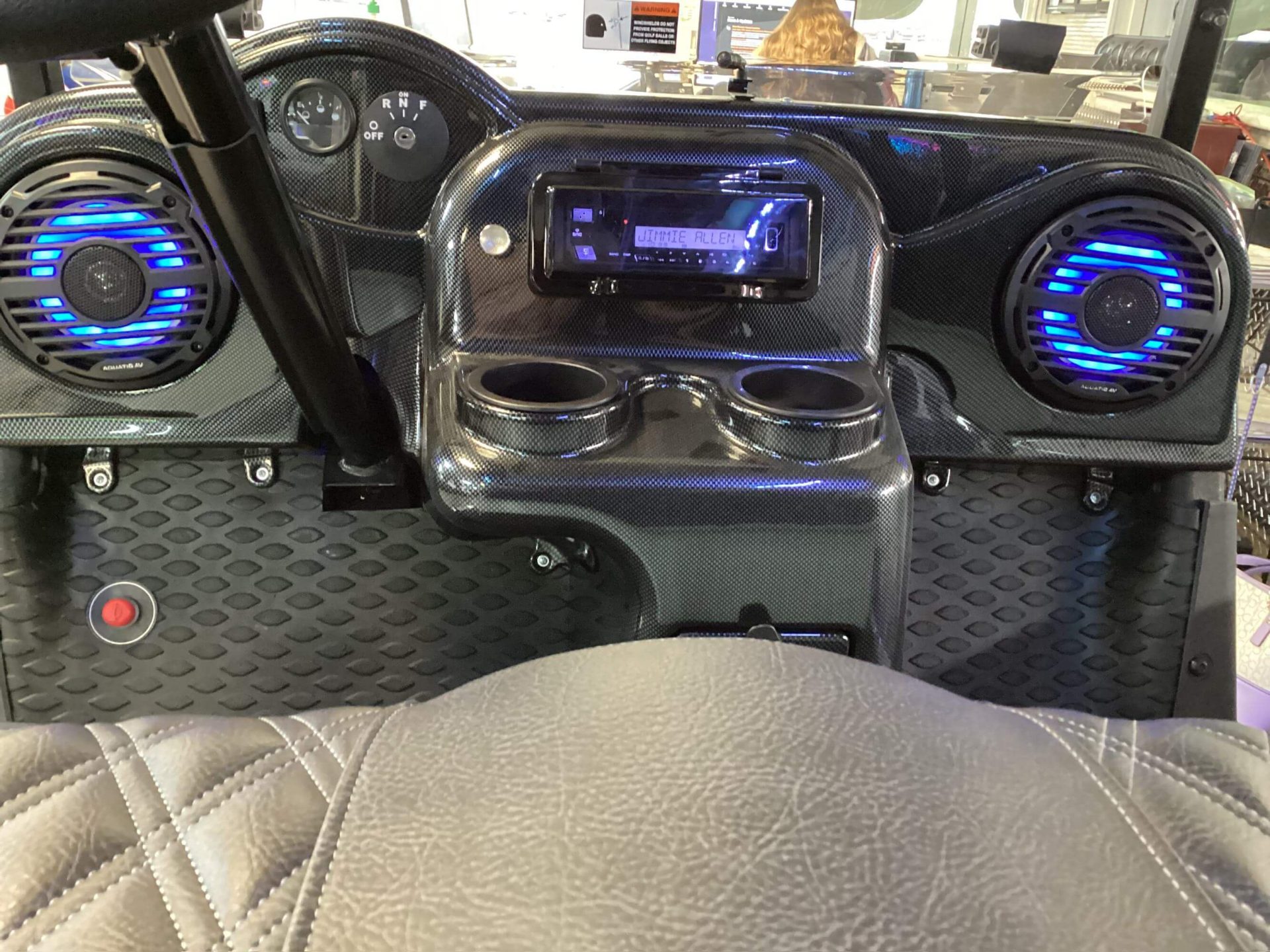 Looking for a fun way to customize your golf cart? If you love music as much as we do you may like some of our sound options we have at Quality Golf Carts! We carry Bluetooth sound bars that can be mounted to your golf cart along with Carbon Fiber dashes that have a Radio and speakers. If you are a music fanatic we also have an extra step above the other options. We can add a Bass Booster to our ECO X Sound Bar or a Sub & Amp Combo to the Dash/Radio setup that will amplify your tunes on your cart. If you are looking for something eye catching, check out all of the options we have for you!